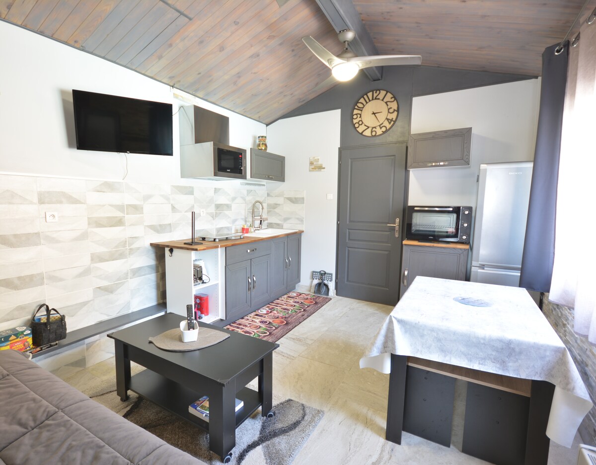 Bu rahat ev bütün ailə üçün rahat qonaqlama təklif edir. Yaşayış yerində sakitcə sahəsi 40 m2 olan bu tam ayrıca mənzil sizi qane edəcək. Tualetli açıq mətbəx, yataq otağı və hamam-tualet ilə təchiz olunub. Çöldə 200 m2-dən çox xüsusi bağdan istifadə edə biləcəksiniz. Yemək masası və şamların kölgəsində istirahət zonası. Gecə tərəfi, otaqda ikinəfərlik çarpayı və qonaq otağında klikləmə.