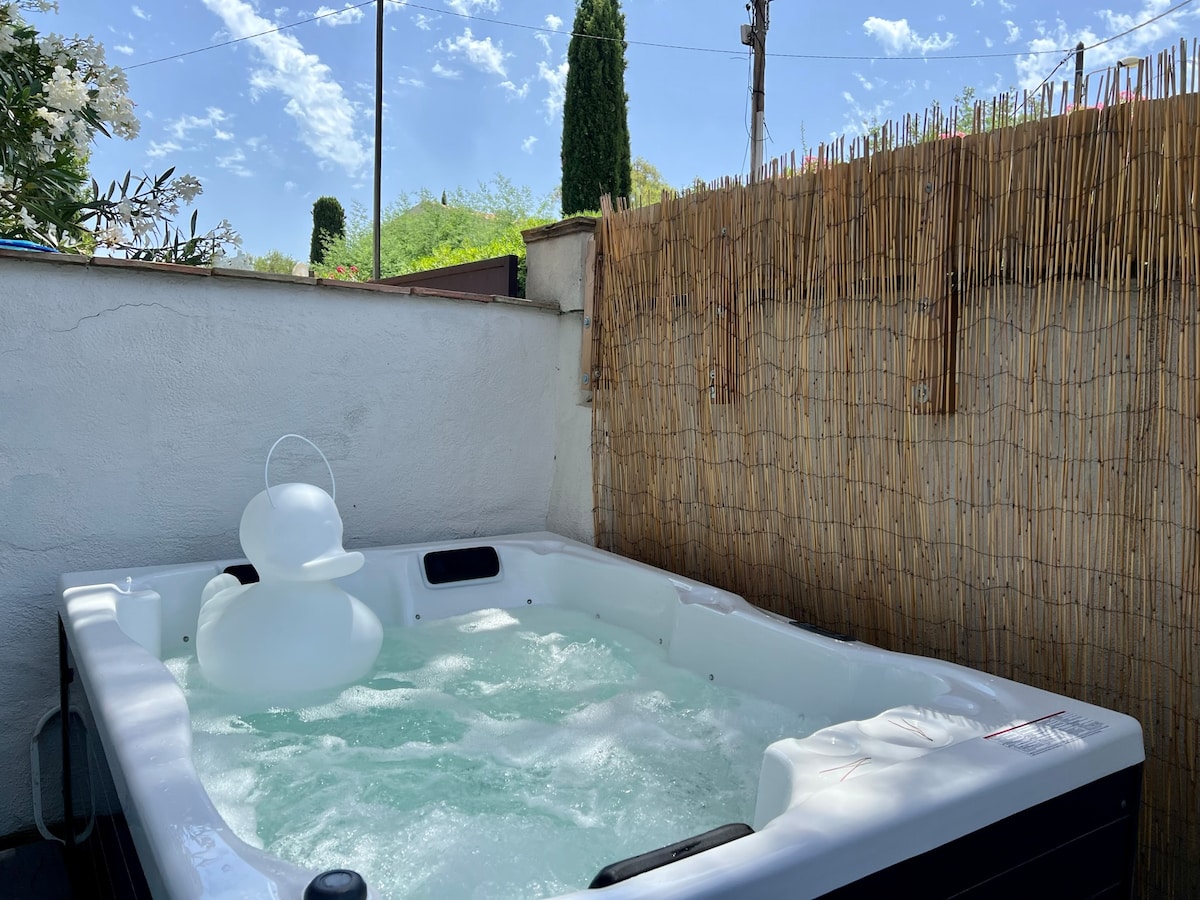 Təmir edilmiş mənzildə müstəsna tətil üçün; şəxsi əmlakın yuxarısındakı unikal mühit, birbaşa qonşular və fantastik dəniz mənzərəsi yoxdur. İkinəfərlik yataq otağı, qonaq otağı, yemək sahəsi, mətbəx və terraslar, biri bağa, biri dənizə baxır. Hovuza giriş (İstək əsasında isitmə, əhatə olunan haqlar), dəsmallar və yataq dəsti təmin edilir. Camaşırxana, paltaryuyan maşın və quruducu. Beach La Nartelle 8 dəq. avtomobil ilə, şəhər mərkəzi 10 dəq. maşınla