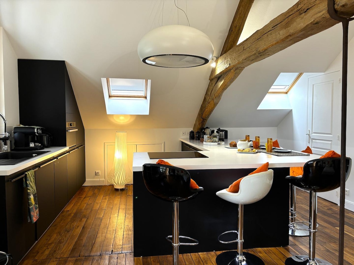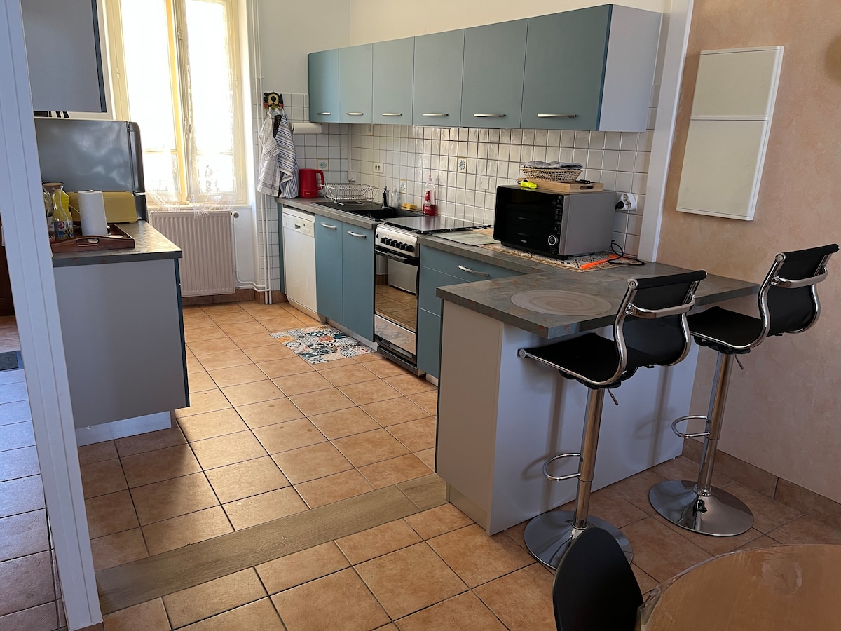 Le Petit Futé tərəfindən tövsiyə edilən bir əsrlik parkın mərkəzində, 19-cu əsrə aid malikanənin 2-ci mərtəbəsində gözəl mənzil. Qatar stansiyası və turist mərkəzindən piyada 5 dəqiqəlik məsafədə, şəhərin ortasında heyranedici anklav. 2 yataq otağı, çox geniş, hər birində 160x200 çarpayı və ofis var. Böyük bir divan 5-ci çarpayı təklif edir. Tam təchiz olunmuş mətbəx, qonaq otağına açıq, ürəkaçan səhər yeməyi və səhər yeməyindən zövq almaq üçün sizə ideal bir qonaq otağı təklif edir.