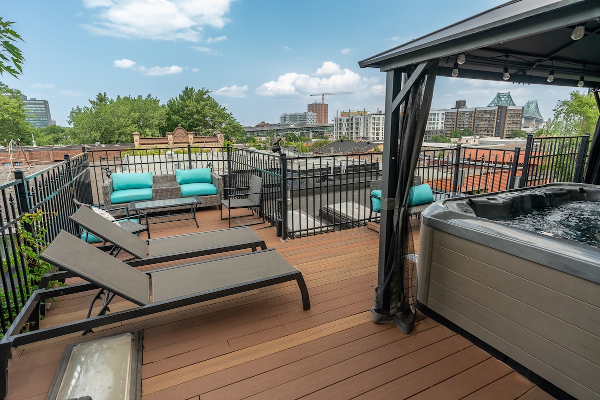 Monrealın mərkəzində yerləşən 2 yataq otaqlı kondominium + 1 təmirli divan çarpayı. Müasir dizayn, açıq hava qonaqlaması tam təchiz olunub: AĞILLI TV, KONDİSİONER, İNTERNET, barbekü. Rooftop SPA (yay mövsümü) olan üç terras. Ən yaxşı restoranlar və həyatın ən yaxşıları ilə qonaqlamanızdan zövq alın. Öz-özünə giriş. Təxminən 5 dəqiqəlik piyada məsafədə pulsuz açıq parkinq (yay mövsümündə iki pulsuz parkinq yeri).