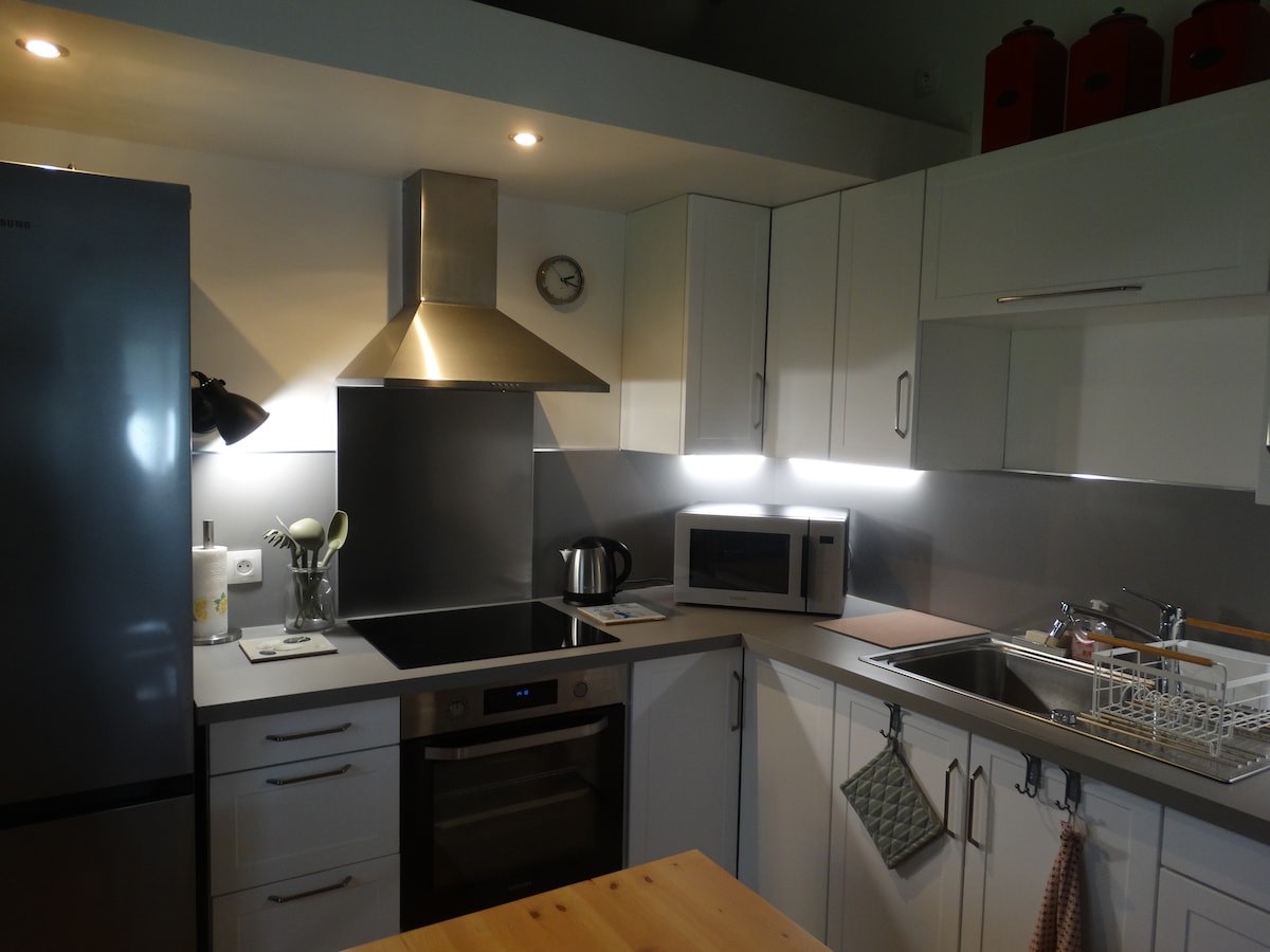 Çox gözəl çimərlikdən 350 m məsafədə, mağazalara yaxın, yeni, müstəqil və kondisionerli studiya, 20m², bağçamızda sakitcə yerləşir: - 1 hamam otağı 1 duş (80 sm x 90 sm), 1 çanaq və 1 tualet - Hob, soyuducu, çanaq, 2 yanar induksiya şobəsi, dörd/dörd mikrodalğalı soba və qabları olan 1 mətbəx sahəsi - 1 işıqlı yataq otağı 160 sm x 200 sm, işarələr, qarderob, 1 masa və 2 stul və televiziya - 1 ayrıca terras (1 masa, 2 stul və 2 göyərtə.)