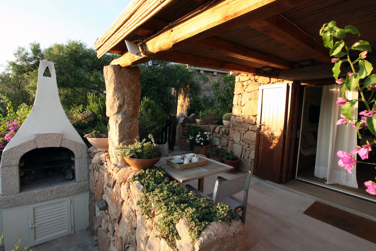 Cottage all'interno di una grande proprietà, nel cuore della Costa Smeralda, immerso nel verde, in completa privacy, con veranda e ampio giardino che si affacciano sulla Baia di Liscia di Vacca, dal quale si possono ammirare le isole dell'arcipelago di La Maddalena. La soluzione ideale per chi vuole trascorrere una vacanza in relax e godere di una vista mare mozzafiato, ma allo stesso tempo visitare, con qualche minuto di auto, Porto Cervo e le più belle spiagge della Costa Smeralda