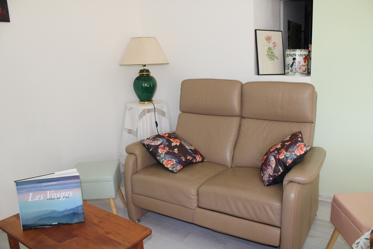 Gîte de la Source de Belle Fleur 52 m² terrasla tam təmirli, epinal - Remiremontda Hautes-Vosges qapılarında yerləşir - Luxeuil les bains ox. Yaşayış yeri giriş zalı, ağıllı televizor və odun peçi olan qonaq otağına açılan tam təchiz olunmuş mətbəx, ikinəfərlik çarpayısı olan gözəl yataq otağı, (körpə çarpayısı mövcuddur), vanna və tualeti olan vanna otağı olan bir səviyyədədir. Cənub-Qərb ilə üzbəüz gözəl təchiz olunmuş terras. Pulsuz Parkinq. Wi-Fi.