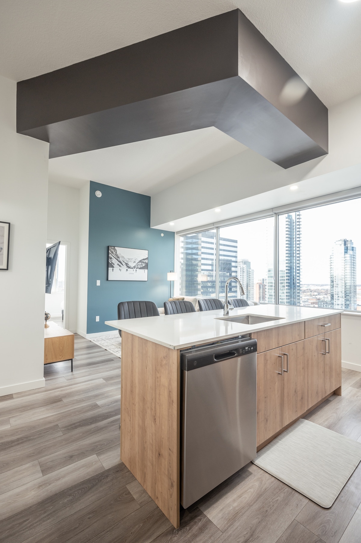 Tam təchiz olunmuş mətbəx və rahat mebellər uzunmüddətli qonaqlamalar üçün mükəmməldir. Səyahət edərkən məşq rejiminizi qorumaq üçün hovuz və idman zalından istifadə edin. Mükəmməl yerdə yerləşən bu ev bazasından hər şeyə asanlıqla giriş imkanından zövq alın. Balkondan şəhər səmasının heyrətamiz mənzərələrini seyr edin. Şəhərin ən yaxşı restoran, kafe və əyləncə məkanlarından, Rocers Place, MacEwan Universitetinə piyada məsafə və Alberta Universitetinə qısa tranzitdən sadəcə bir addım uzaqdasınız.