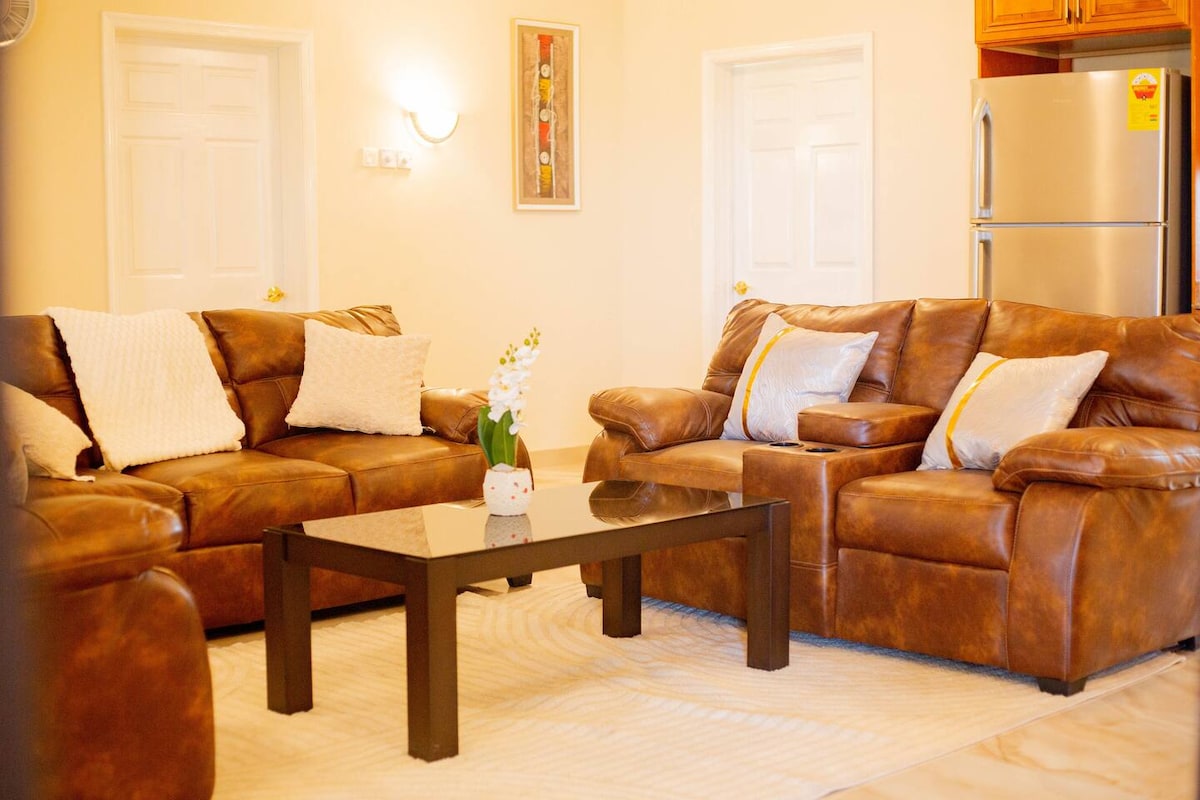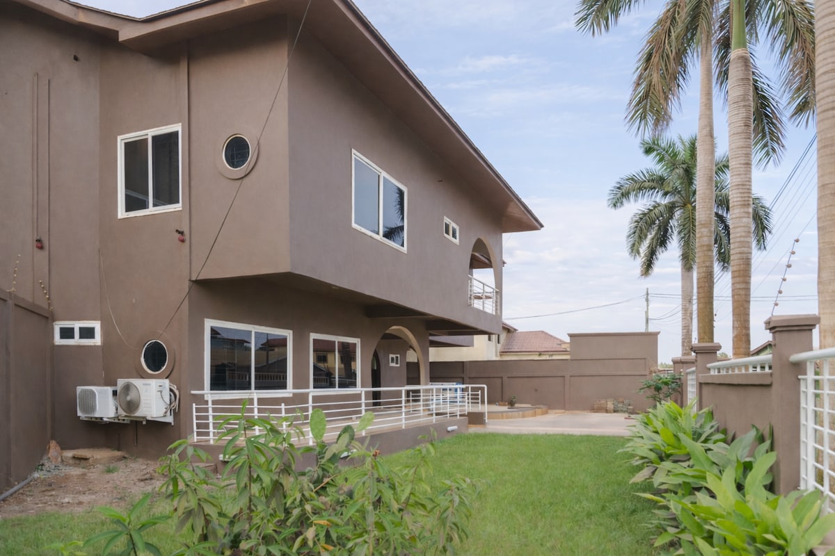 Super Ev Sahibi Reqinin Evinə Daxildir: 🛫 PULSUZ Hava Limanı Göndərmə və Yola düşmə 🚗 PULSUZ Avtomobil və Sürücü (sizdə yanacaq; Akkra xaricindəki səfərlər üçün əlavə haqlar) 🍳 PULSUZ Aşpaz (ərzaq məhsulları daxil deyil) 🥞 PULSUZ Səhər Yeməyi (çay, qəhvə, pankeyk, yumurta, vafli, yulaf, sıyıq) 🕛 ÖDƏNİŞSİZ Gec Çıxış 🏡 Qapalı İcma, 24/7 Təhlükəsizlik 🛌 2 Yataq otağı, 1,5 Hamam, Tam Kondisionerli 📶 PULSUZ Starlink WiFi, Netflix, IPTV 🔌 Universal Elektrik Soketləri 🏋️ İdman zalı və hovuz (əlavə haqq) Akkrada problemsiz qonaqlama üçün mükəmməldir