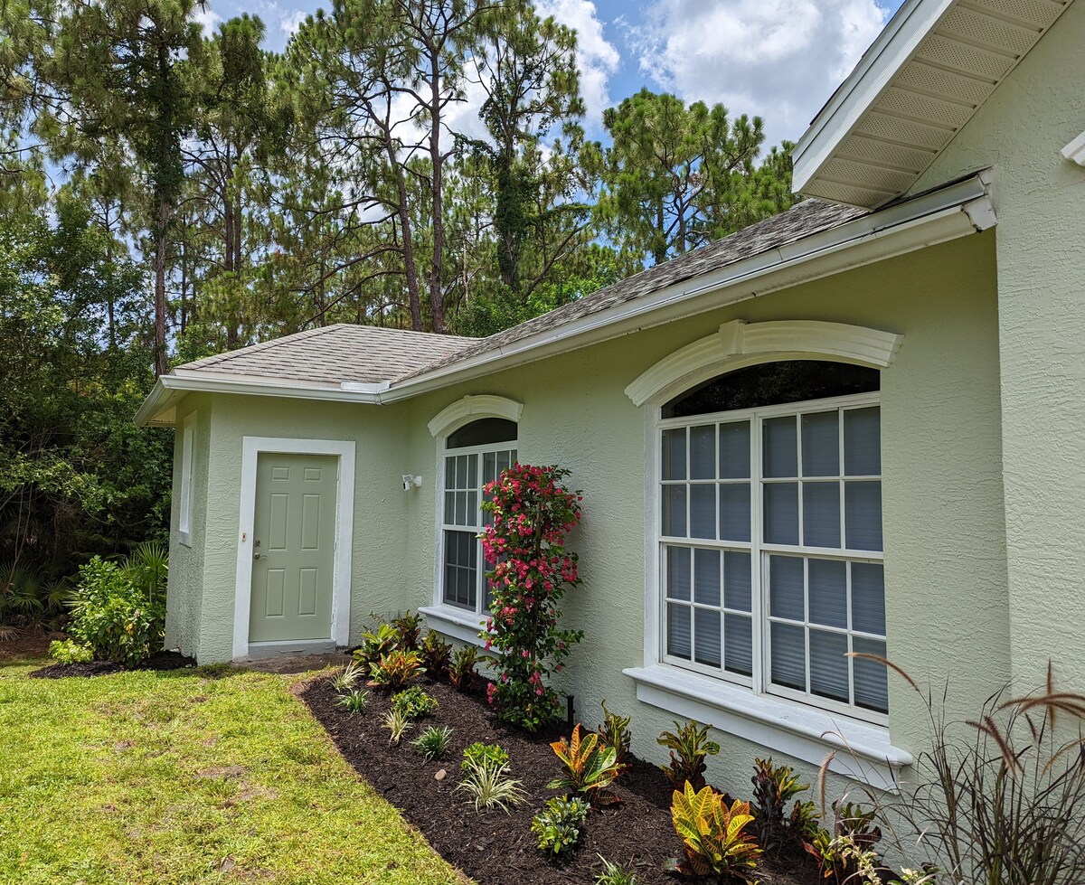 Escape to our charming private guest cottage, just 1.5 miles from Bonita Beach! This updated studio comfortably fits 2 guests and features a king bed, a fully equipped kitchen, and a large screened-in lanai. Enjoy modern comforts with a coastal vibe, complete with beach bikes and a private entrance. Perfect for a quiet, relaxing beach getaway in a safe neighborhood.