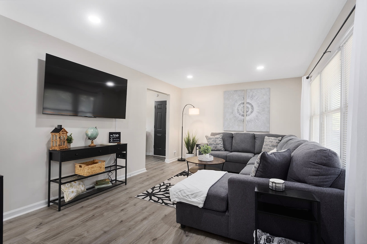Hər zaman uyğun əhval-ruhiyyə yaradan rahat qaz buxarısı var. Açıq mətbəx yemək bişirmək və çörək bişirmək üçün tam təchiz olunub. Arxa həyət hasarlanıb, uşaqlar və ev heyvanları üçün mükəmməldir. Arxa qapının bir qədər kənarında göl və gözəl təbiət cığırı, evin qarşısındakı küçənin o tərəfində isə uşaq parkı var. Yaxınlıqdakı ərzaq mağazasına, şərab/spirtli içki mağazalarına, idman zalına və restoranlara piyada gedə bilərsiniz. 27 günlük və ya daha uzunmüddətli icarələr üçün əlçatandır.