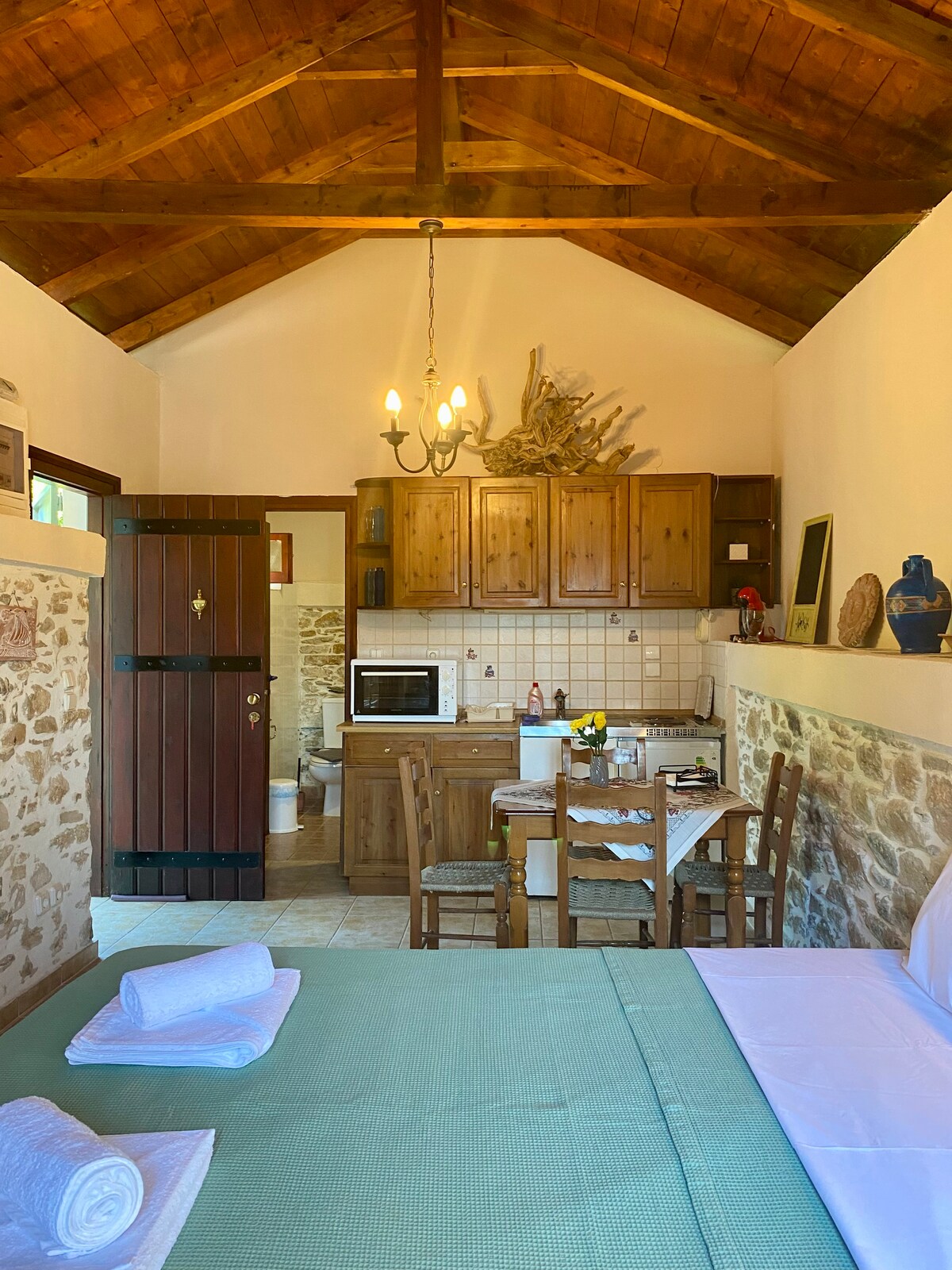 Πρόκειται για ένα ξεχωριστό στούντιο μονόχωρο με ένα διπλό κρεββάτι και ένα μονό. Στο στούντιο υπάρχει πλήρως εξοπλισμένη κουζίνα, τραπεζαρία και μπάνιο. Mεγάλη αυλή , με τραπεζαρία έξω από το δωμάτιο , ελεύθερο Wi-Fi . Η παραλία που μπορείτε να κάνετε το μπάνιο σας βρίσκεται στα πέντε μέτρα από το δωμάτιο. Μπορείτε να απολαύσετε θαυμάσιους περιπάτους και υπέροχο ηλιοβασίλεμα. Ιδανικό μέρος για ηρεμία και χαλάρωση.
