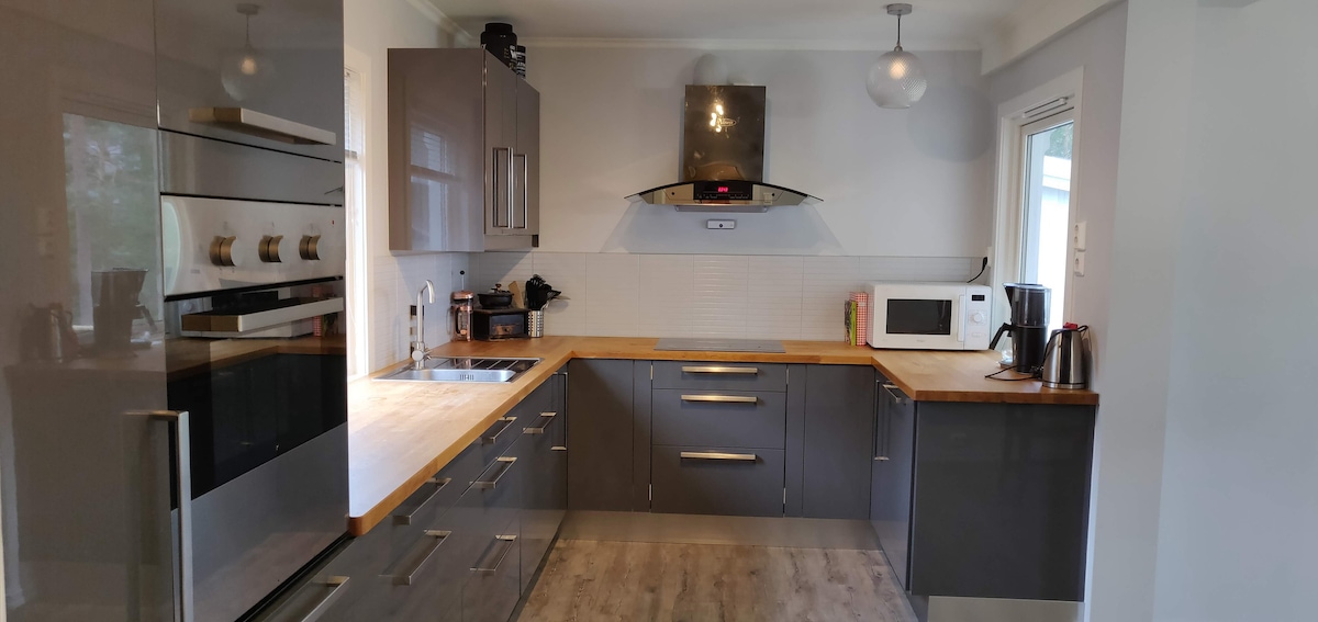 Leiranın mərkəzində mənzərəli ev. Yeni təmir edilmiş, 3 yataq otağı və 4 çarpayı, 1 hamam və 2 tualet. Qəhvə maşını daxil olmaqla bütün avadanlıqlarla təchiz olunmuş mətbəx. Strandefjordun gözəl mənzərəsi olan qonaq otağı. İnternet TV. Şəhər mərkəzinə / ticarət mərkəzinə və çimərliyə məsafə azdır. Bağ mebeli olan açıq hava məkanı. Bir həftə və ya daha çox müddətə icarəyə götürdükdə - qarşılama hədiyyəsi - şampan və meyvə