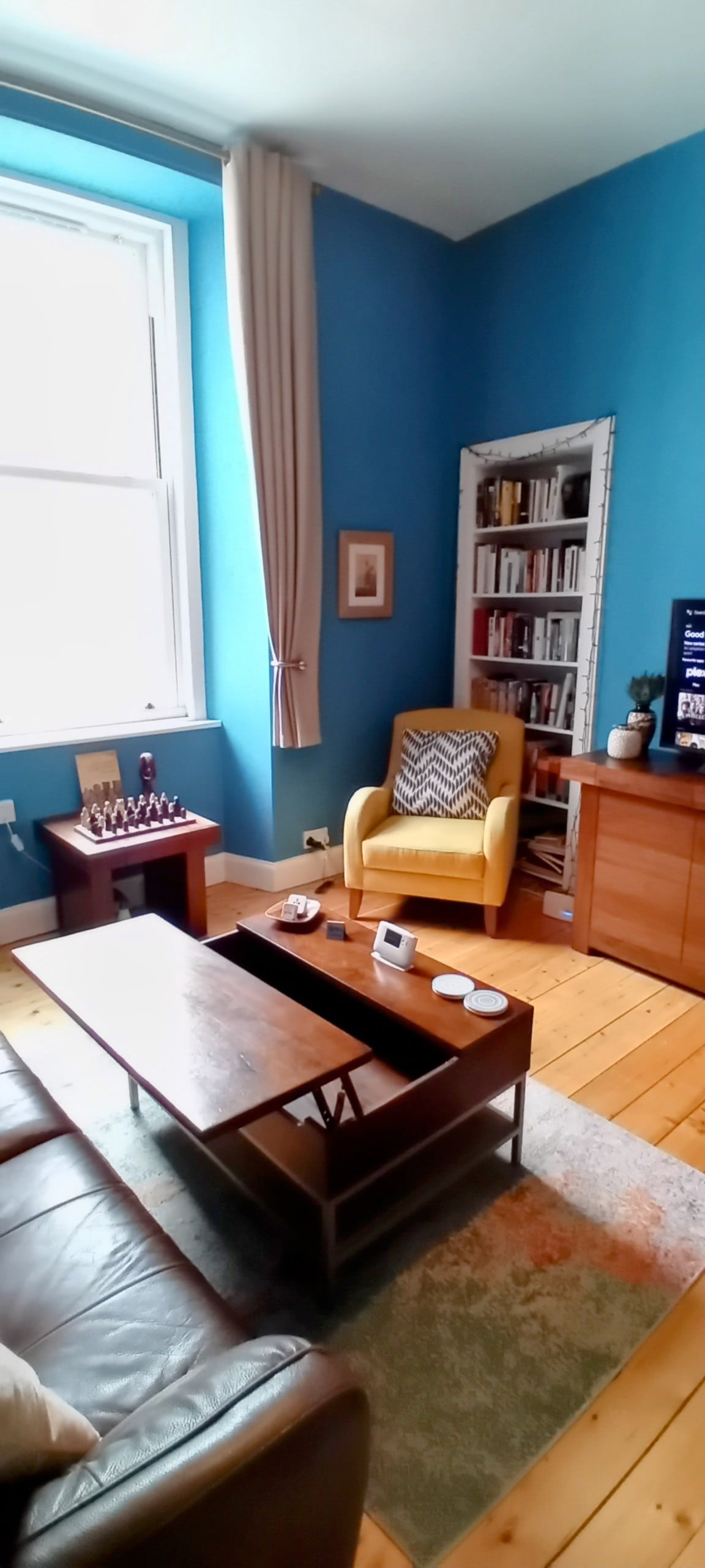 Şotlandiyalı sənətkarın mülkiyyətində olan, Edinburqun yamyaşıl Abbihill bölgəsində, ənənəvi Viktoriya üslublu şəhər evindəki dəbli, rahat 2-ci mərtəbə mənzili. Mənzilin yerləşdiyi yer ideal olaraq şəhərin mərkəzinə yaxın, lakin sakit bir küçədədir. Royal Mile, Holyrood Sarayı və Parkı, Kalton Təpəsi, Şotlandiya Parlamenti və Köhnə Şəhər piyada məsafəsindədir. Yüngül səhər yeməyi qiymətə daxildir - kruasan/mürəbbə, qəhvə, çay və süd. Yaxınlıqda çoxlu mağaza, kafe, pab və park var.