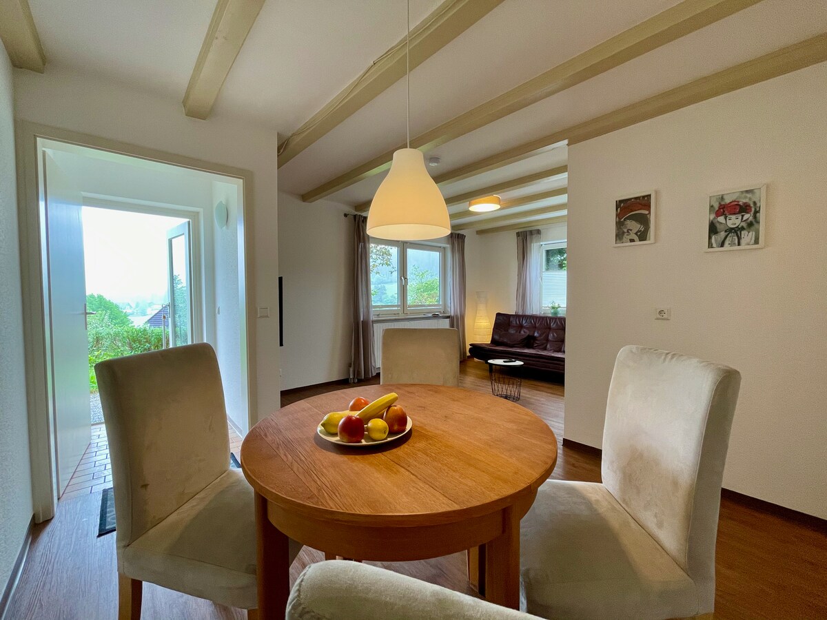 Highlights 🌟Zentrale, ruhige Lage: 100 m zu Bäckerei, Supermarkt, Restaurants, Bus 🌟Direkt an Wanderwegen, hundefreundlich, an Wiese/Wald 🌟Parterre-Wohnung mit Tiefgarage & Stellplatz 🌟Voll ausgestattete Küche mit Spül-& Kaffemaschine, Essbereich 🌟Bad mit Wanne, Ost-Balkon mit Wiesenblick – ideal für Frühstück in der Morgensonne 🌟Wohnzimmer: Schlafcouch als Boxspringbett 🌟Schlafzimmer: Boxspringbett (Doppel- oder Einzelbetten) 🌟WLAN, 2 TVs 🌟Leckere Frühstücksoption in naher Bäckerei