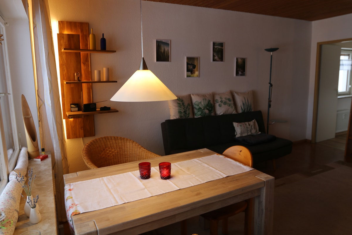 Lehne dich zurück und entspanne dich – in dieser ruhigen, stilvollen und liebevoll eingerichteten Unterkunft mit ca. 55qm². Die Wohnung befinden sich in ländlichem Raum und befindet sich in unmittelbarer Nähe zu Wanderwegen, Wald, Langlaufloipen und Skipisten. Die Wohnung befindet sich im Dachgeschoss eines Zweifamilienhauses. Sie ist neu renoviert, das Bad lädt mit der großen Regendusche zum entspannen ein. In der voll ausgestatteten Küche steht der Selbstversorgung nichts im Weg.