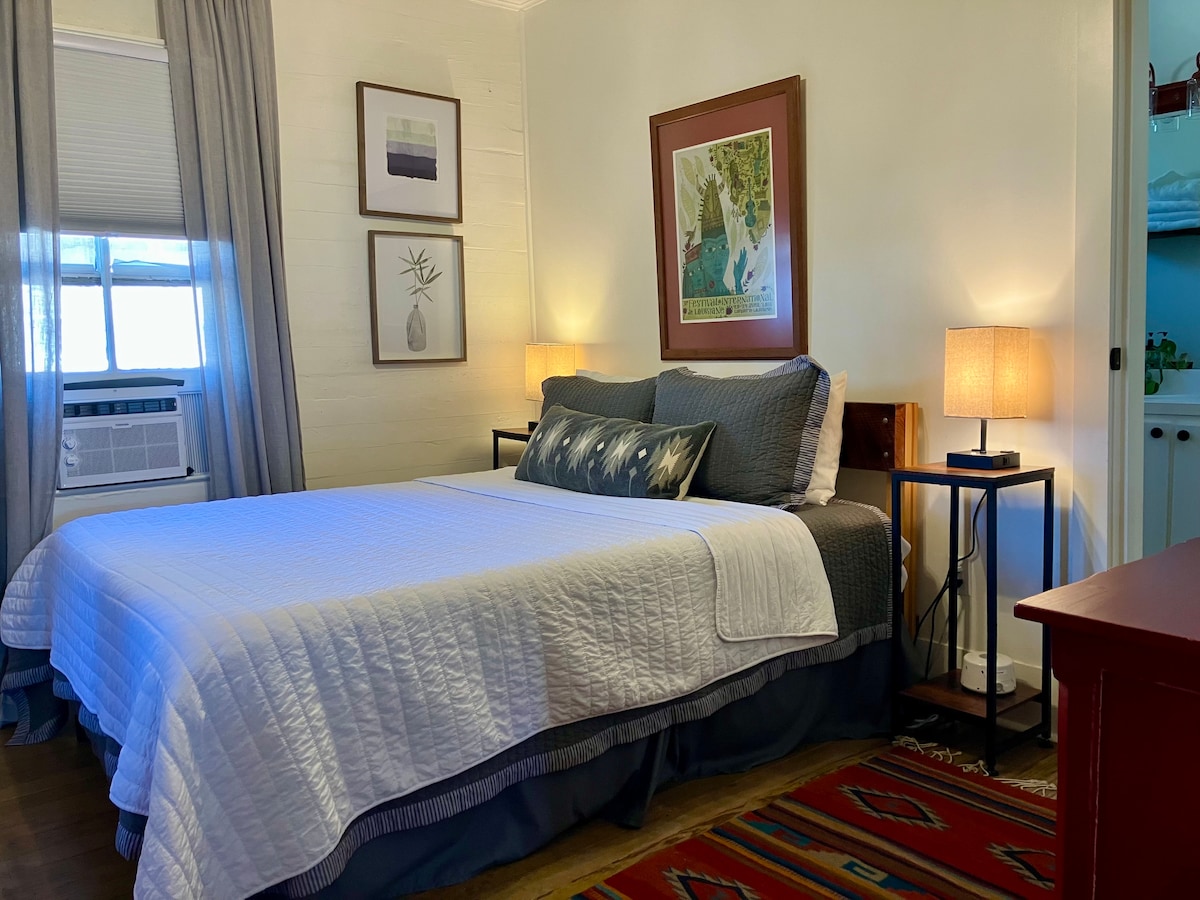 Yenicə təmir edilmiş bu kondominium Lafayetin mərkəzində yerləşir və Corner Bar, Judice Inn, Zea's, Grand Theatre və ən yeni əlavəmiz -Moncus Park kimi yerli sevimlilərə piyada məsafədədir! Məkan qəhvə/çay barı, tam mətbəx, sevgilim verandası, W/D, qara rəngli pərdələr, simsiz adapterlər, ütü/ütü masası, buxarlandırıcı, fen, səyahət diş fırçası/diş pastası, şampun/saç kremi/bədən yuma, WIFI, Netflix və axın üçün xromqnoz cihazı ilə təchiz olunub.