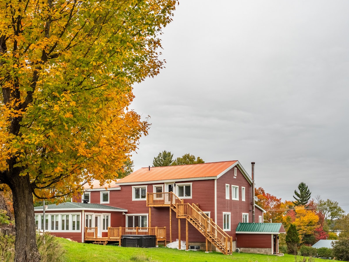 Relax in this truly Insta-worthy country house. Art meets nature with 70s boho vibes. Sleeps 8. Fully equipped kitchen, large open plan w/ 2 living rooms & wood fireplace (wood complimentary). Surround yourself with nature in comfort. Screened outdoor living/dining room with outdoor heaters. Large yard with BBQ & firepit. Wifi (Fibre Op), Smart TVs (w/Netflix, etc), board games, etc Less than 1 min drive to Mt. Cascades ski hill & water park. 10 min drive to Gatineau river public park.