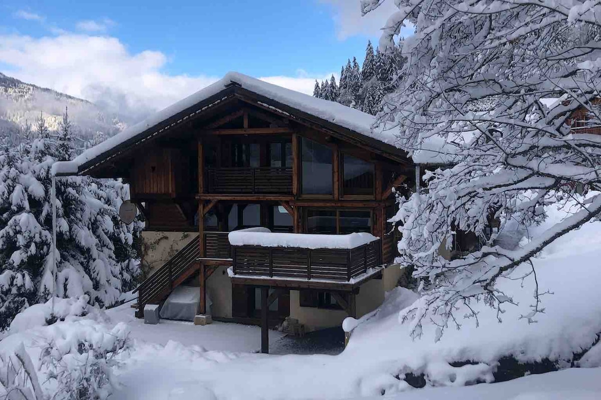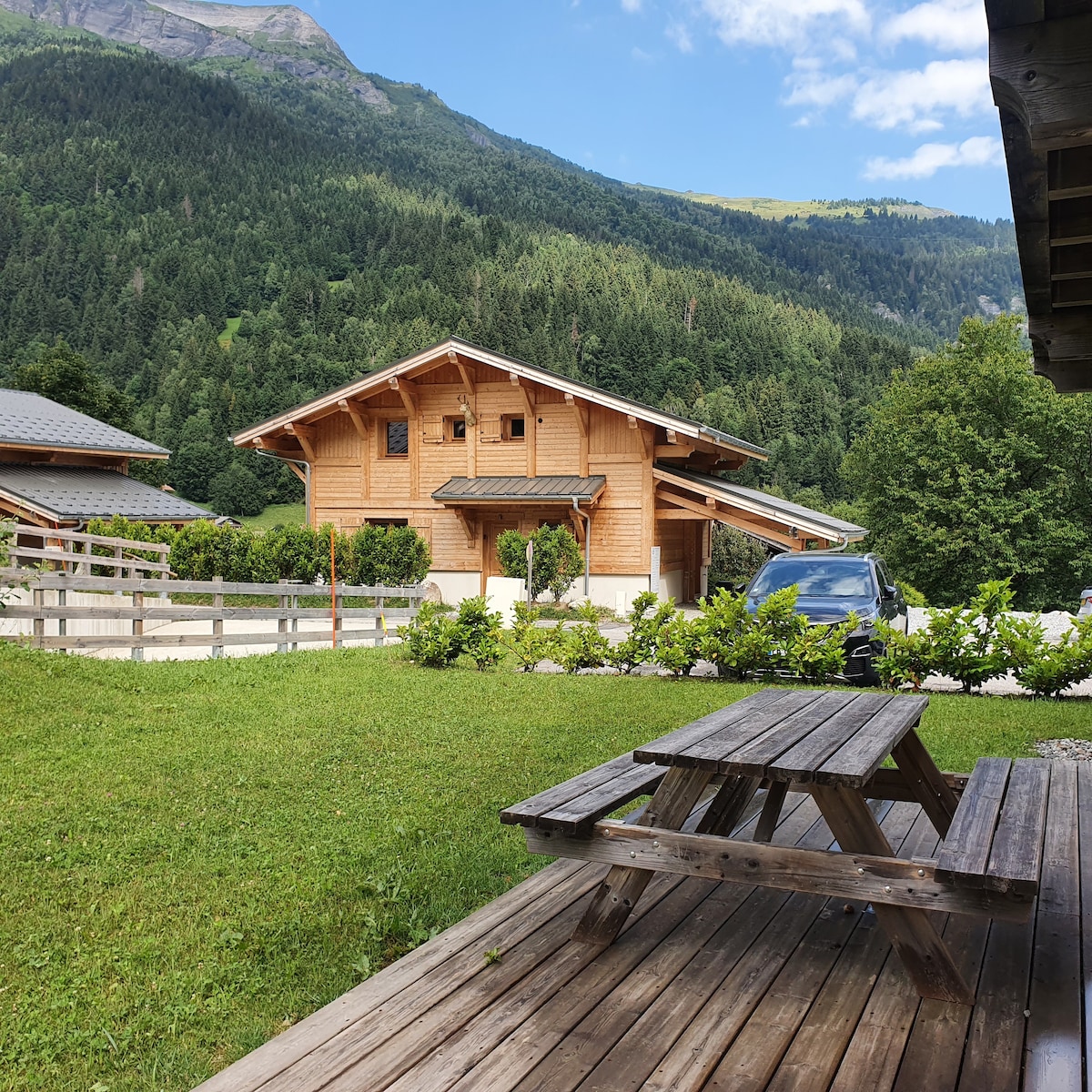 Dağ Evi Mont Blanc massivinin gözəl mənzərəsi olan rahat günəşli yerdə qurulmuş böyük, dəbdəbəli dağ evidir. Dağ evi yay tətili üçün işıqlı və geniş və mükəmməldir. Burada böyük günəşli bağ, terrasda 12 nəfərlik masa, bağda piknik masası və Veber qazı barbekü var. Dağ evində 6 yataq otağı var və 15 nəfər yatır. Üzgüçülük gölü və tennis kortu da daxil olmaqla fəaliyyətləri olan parc de loisir-ə 2 km; sevimli restorana 100 m; kəndə piyada 15 dəq.