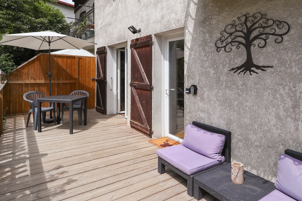 5-ci mərtəbədə şəhərin mərkəzində Mont Blanc mənzərəli füsunkar mənzil. 🛏Yataq otağı: Saxlama və ikinəfərlik çarpayı 160/200 olan çox genişdir 🛋Qonaq otağı: Əyri düz ekranlı böyük künc divanı, səs çubuğu və əhval-ruhiyyənin işıqlandırılması. 🛀🏻Vanna otağı: Böyük vanna və paltaryuyan maşın/quruducu. 🍽Mətbəx: qabyuyan maşın, soba, induksiya sobası, qəhvə maşını Ayrıca Parkinq və Lift Bir neçə və ya bir nəfər üçün idealdır