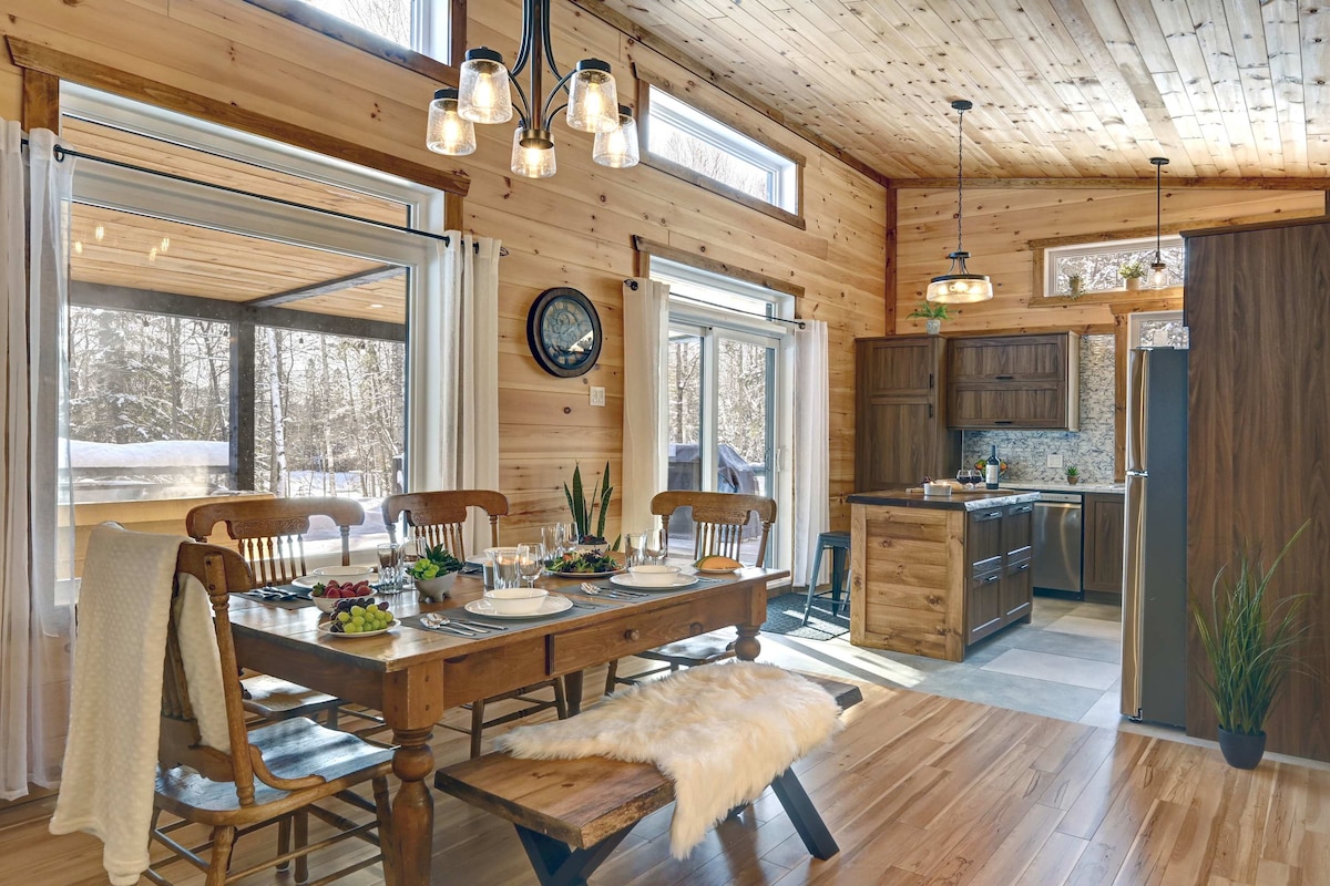 ~ QONAQLARIMIZ ÜÇÜN BÜTÜN KURORT OBYEKTLƏRİNƏ PULSUZ GİRİŞ ~ Fiddler Lake Resort-da xüsusi gölün sakit sahillərində yerləşən ənənəvi günlük dağ evimizdə rustik cazibədarlığın və müasir rahatlığın mükəmməl qarışığını kəşf edin. Monrealdan cəmi 50 dəqiqəlik məsafədə və tanınmış dağ-xizək kurortlarına yaxın yerdə istirahət və macəra üçün ideal tətiliniz var. Mövsümün gözəlliyinin dəbdəbə ilə qovuşduğu zərif dizaynlı dağ evimizdə qonaqlama ilə tətilinizi qeyri-adi edin.