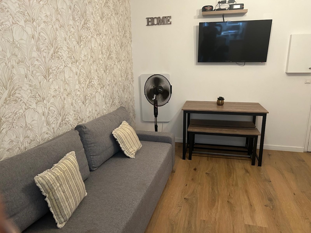 Two-room apartment on the 1st floor in a very quiet area, located on the outskirts of Paris (only one metro station away). The exterior gives the impression of being in the countryside, surrounded by small houses. The interior of the apartment is designed for relaxing and unwinding. Everything you need is present for a pleasant stay.