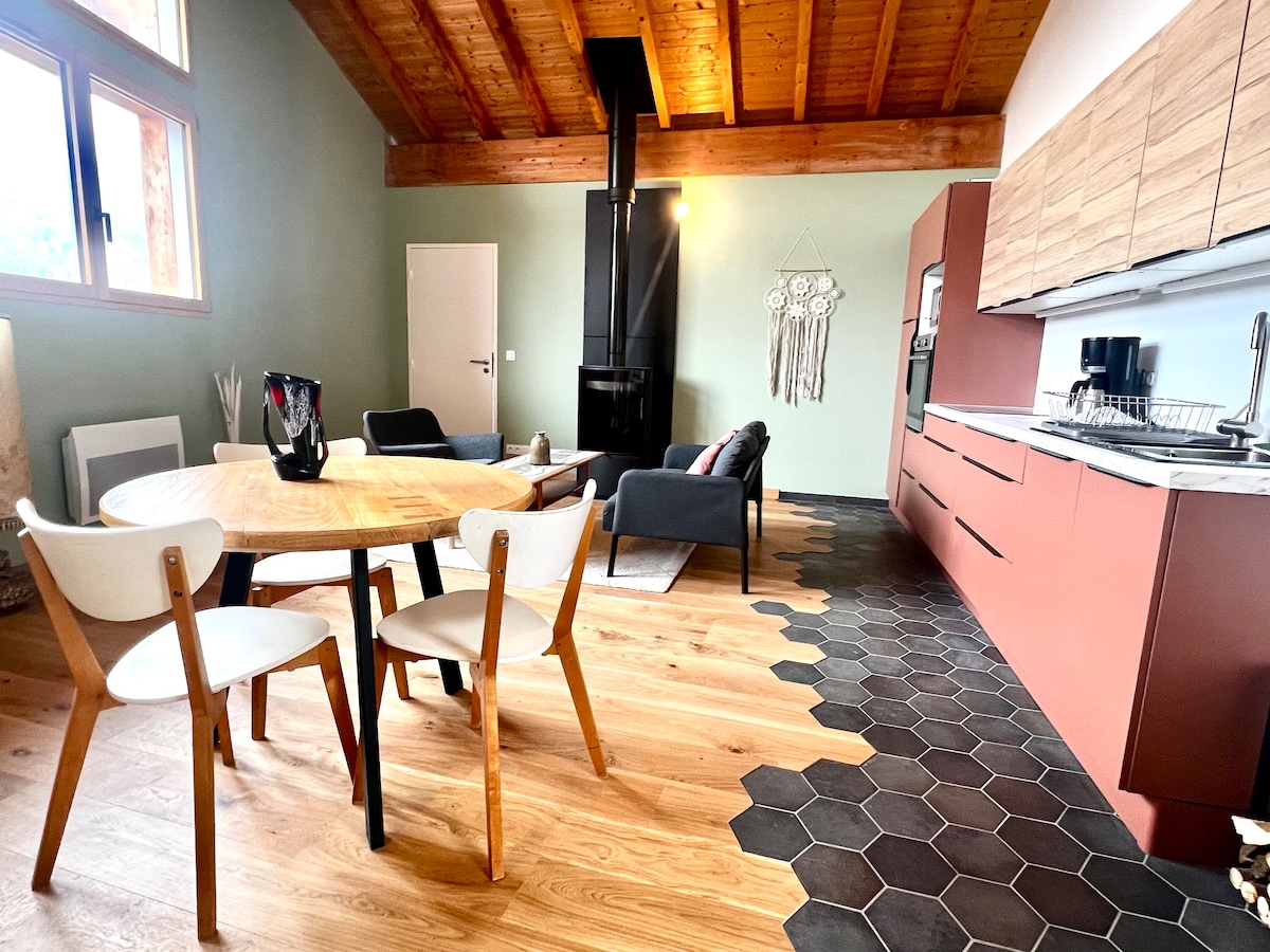 Xarakterli evin birinci mərtəbəsində tamamilə yeni mənzil. Belledonne massivinin üstün mənzərəsi. Açıq şüaları və açıq mətbəxi olan kafedral qonaq otağı. Odun sobası axşamlarınızı isidəcək. Allevard les Bains Spa şəhərindən bir neçə kilometr məsafədə və Kollet xizək kurortundan 20 dəqiqəlik məsafədə yerləşən kiçik bir kənddə yerləşir. Sakit və təbii mühitdə təbiətdən zövq almaq üçün idealdır.