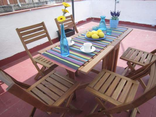 The most interesting thing of the apartment is the amazing terrece, you will find in it. It's a 9th floor of height, the building has two elevators After an intense day visiting Barcelona, nothing better to relax in this terrece with a glass of wine