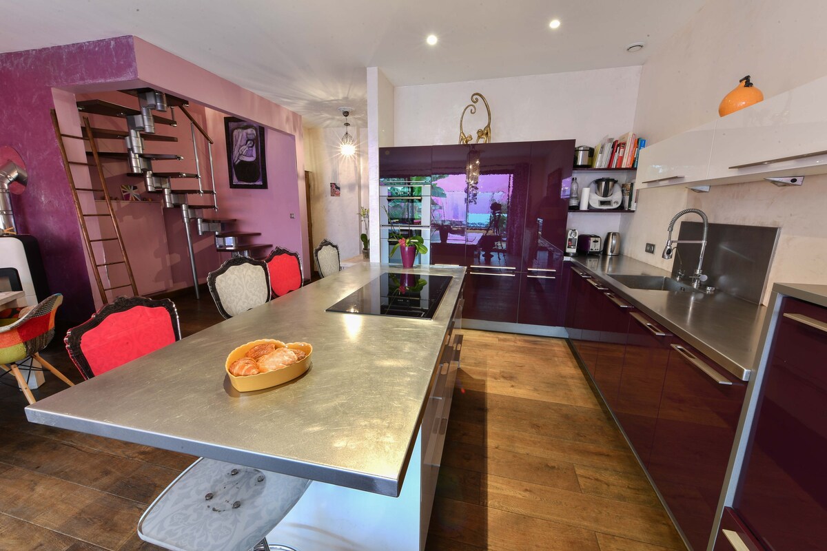 Dəniz kənarından 20 dəqiqəlik məsafədə yaşıl şəraitdə gündəlik həyatın tələblərindən uzaqlaşın.(Noirmoutier, Fromentine) Təsəvvür edilən və hazırlanmış bu 60 m2 sahədən zövq alın və bədənə və ağıla rifah gətirin. Spa, quru və ya nəm sauna, musiqi, qalandaj döşəmədən tavana qədər pəncərələr və təbiətə baxan böyük terras, hər şey parçalanmaq üçün var. Gəlişdən sonra şampan sərin olur və səhəri gün səhər yeməyi sizin ixtiyarınızdadır*.