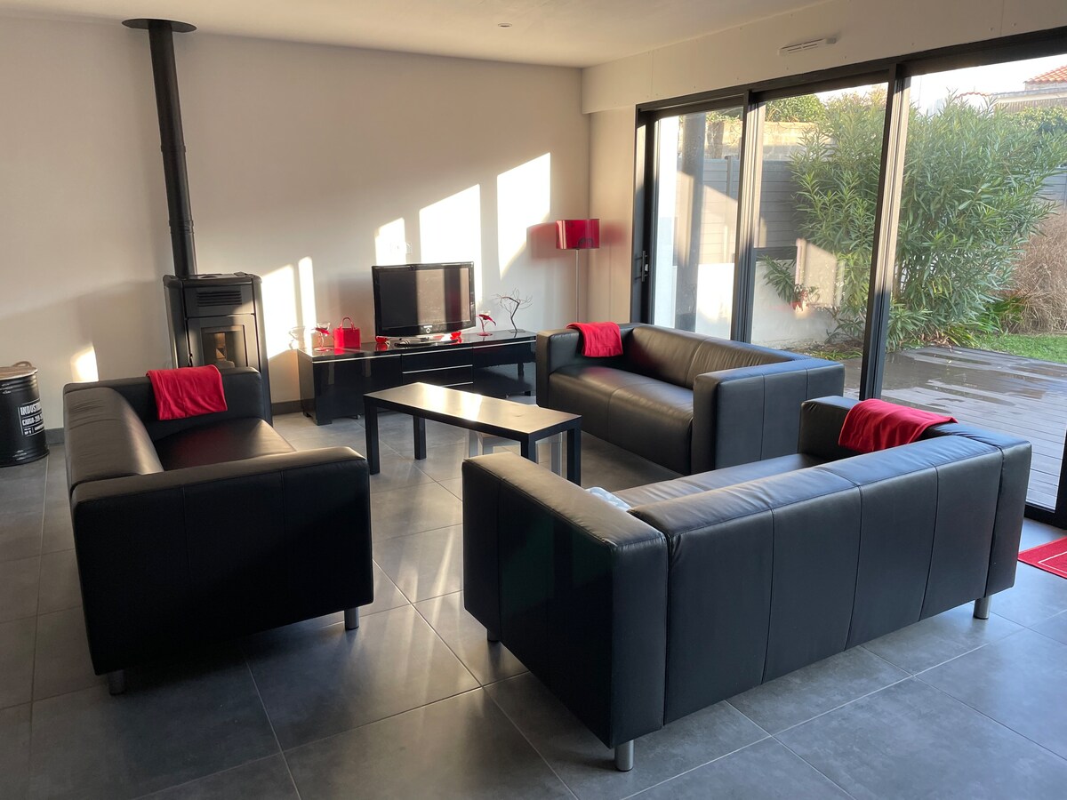Yeni tətil yaşayış yeri ailələr üçün idealdır, terras və kiçik bağı olan çimərlikdən daş atılır. Qonaqlama yeri Fransa Turist Ofisləri tərəfindən 4* təsnif edilib Təsvir: Döşəmə: 3 yataq otağı, hamam otağı, tualet və qaraj Bağ döşəməsi: Amerika mətbəxi, yəhərçi və tualeti olan böyük qonaq otağı. Böyük terras və qapalı bağça Tutum: 6-8 qonaq (6 böyük - 2 uşaq) Qonaqlama yerinin səth sahəsi: 120 m²