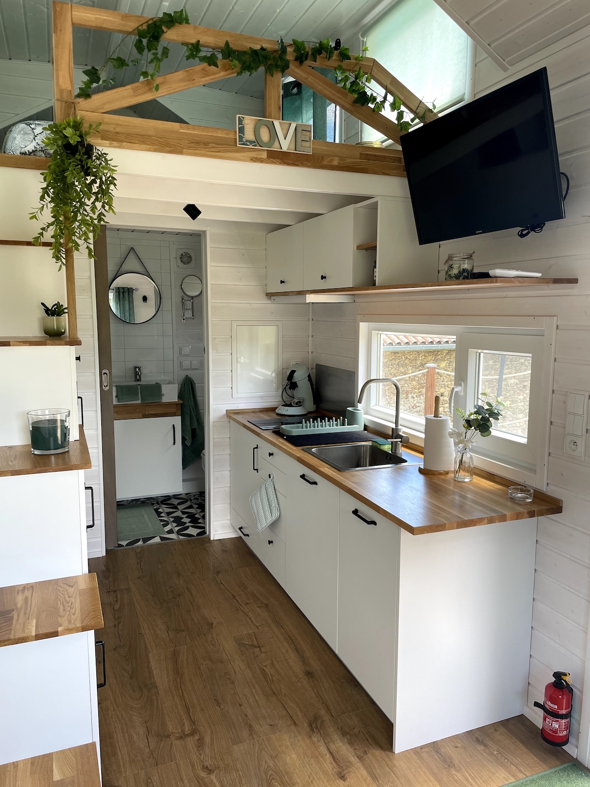 "Boot House" a xoş gəlmisiniz, kOMPLETELY 45 m2-lik YENİ kokos gözəl bəzədilmiş və TAM TƏCHİZ OLUNMUŞDUR! Daxil olduqdan sonra liflə əlaqəli televizor sahəsi görəcəksiniz. Gözəl yataq masası 4. Sakitliyiniz üçün lazım olan rahatlığı formalaşdıracaq tam təchiz olunmuş mətbəx (soba, elektrik sobası, bağlı başlıq, paltaryuyan maşın, qabyuyan maşın, soyuducu və s.). İrəli gəzin və duş otağını sola və düz irəlidə böyük dolabı olan 160 nəfərlik çarpayısı olan gözəl bir yataq otağını görəcəksiniz!
