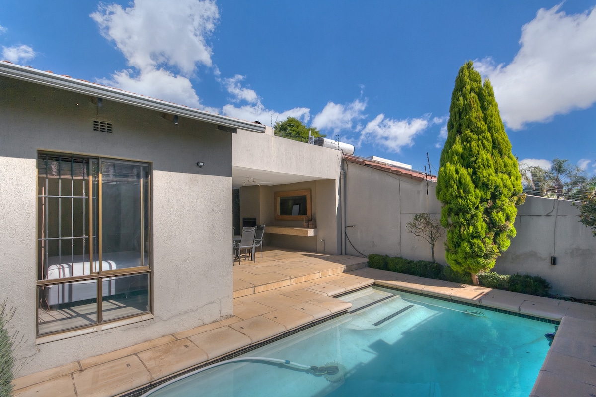 Oliver Tambo Hava Limanına yaxın, sakit bir ərazidə gözəl tam təchiz olunmuş taxta bağ kotteci. Öz şəxsi məkanınızda istirahət edərkən və dincəldikcə quşların şirkətindən zövq alın. Wi-Fi girişi olan açılmamış internet (200 M/s sinxronizasiya) mövcuddur. Üzgüçülük hovuzuna şərikli giriş. Salonda və Əsas Yataq Otağında Netflix ilə Apple TV. Özünəxidmət kontinental səhər yeməyi təmin ediləcək. Öz şəxsi barbekü obyektiniz. Günəş enerjisi və su çənlərimiz var. Bağ duşu mövcuddur.