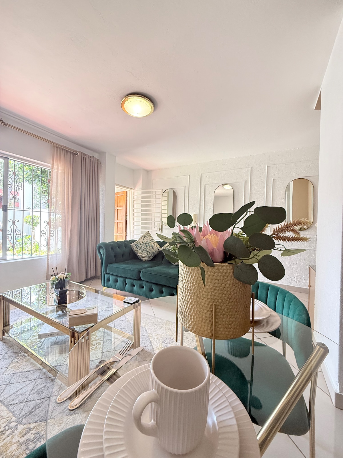 Evdən uzaqda, Tornhill Malikanəsinin gözəl, yaşıl və təhlükəsiz əhatəsində rahat evinizə xoş gəlmisiniz. Nəzarətli əmlaka giriş, 24 saat təhlükəsizlik patrulları və sakit, yaşayış atmosferinin rahatlığından zövq alın. Bu dəbli 2 yataq otağı, 1- hamam otağı (yalnız duş) Qonaq evi mükəmməl Ailə istirahəti təklif edir. OR Tambo Beynəlxalq Hava Limanına cəmi 10–15 dəq, Flaminqo Ticarət Mərkəzinə 5 dəq. Yaxınlıqdakı Qolf Kursları, Padel Məhkəmələri, Təbiət Qoruğu və təbiət və lei üçün yerli mağazalar