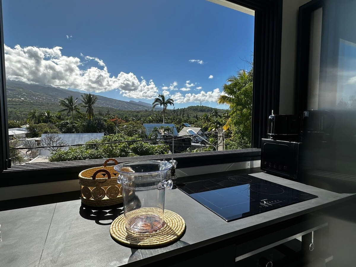 THE REEF 🪸 Penthouse à l’Étang-Salé les Bains Bouteille de champagne offerte 🎁* (pour tout séjour de 7 nuits ou plus) 1 suite • 2 voyageurs • Rooftop avec jacuzzi • Vue mer & montagne • 30 secondes à pied de la plage Bienvenue à THE REEF, un penthouse contemporain et haut de gamme, idéal pour une escapade en couple ! Niché au-dessus d’une villa privée, en première ligne, ce logement neuf allie design moderne, confort et panorama exceptionnel entre océan et montagnes.