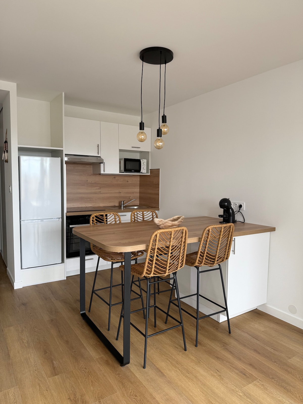 Profitez d’un appartement baigné de lumière avec sa terrasse face à la mer et la plage, sans vis à vis. Appartement 2 pièces d'environ 30 m2, terrasse 10 m2 et place de parking privative. Prestations de confort dans un style moderne et épuré. Il est situé au 2è étage (sans ascenseur) d’une résidence très calme. Le linge est fourni (lit + toilette). Literie récente (2024) 140x190. 2 TV. WIFI (fibre). Idéal pour 2 personnes