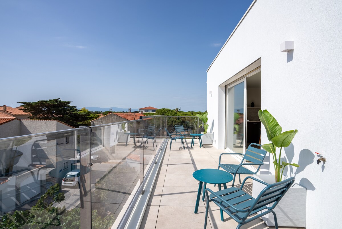 Barcarès qumlu çimərliklərinin 200 metrliyində sizə unudulmaz və ekzotik qonaqlama təklif etmək üçün hazırlanmış 6 nəfərə qədər insanı qəbul edə biləcək unikal və dəbdəbəli əmlak. Mükəmməl təchiz olunmuş və tamamilə yeni olan mənzil istedadlı interyer dizayneri tərəfindən diqqətlə bəzədilib və şübhəsiz ki, sizi aldadacaq. Dəniz mənzərəli terras bu dolğun parametri tamamlayır və gözlərinizi dolandıra bilərsiniz. Paylaşılan cakuzi qonaqların istifadəsi üçündür.
