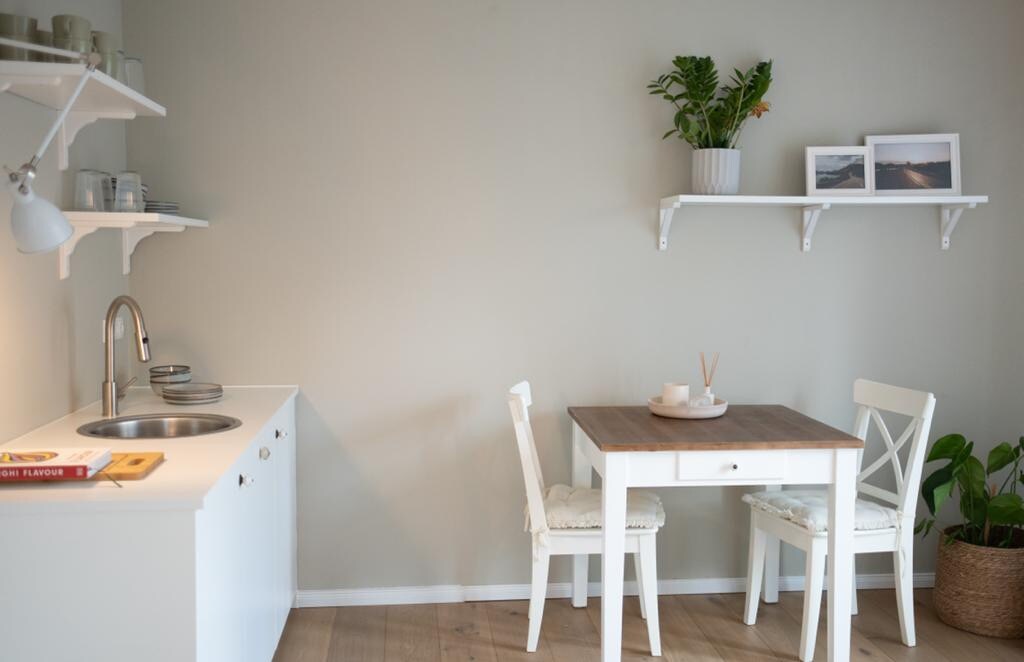 Perfekt ausgestattetes Apartmentzimmer (30qm) für bis zu zwei Personen. – incl. Smart TV, High Speed WLAN, Einzelbetten, kostenlosen Parkplätzen. – Handtücher, Bettwäsche und wöchentliche Reinigung ist im Zimmerpreis enthalten – Waschmaschine und Wäschetrockner mit Münzautomat – mit Küche incl. Kühlschrank, Mikrowelle, Herd, Kaffeemaschine, Toaster, Besteck, Töpfe, Geschirr – der Bahnhof befindet sich in Sichtweite, sehr gute Erreichbarkeit mit Pkw, Transporter, LKW