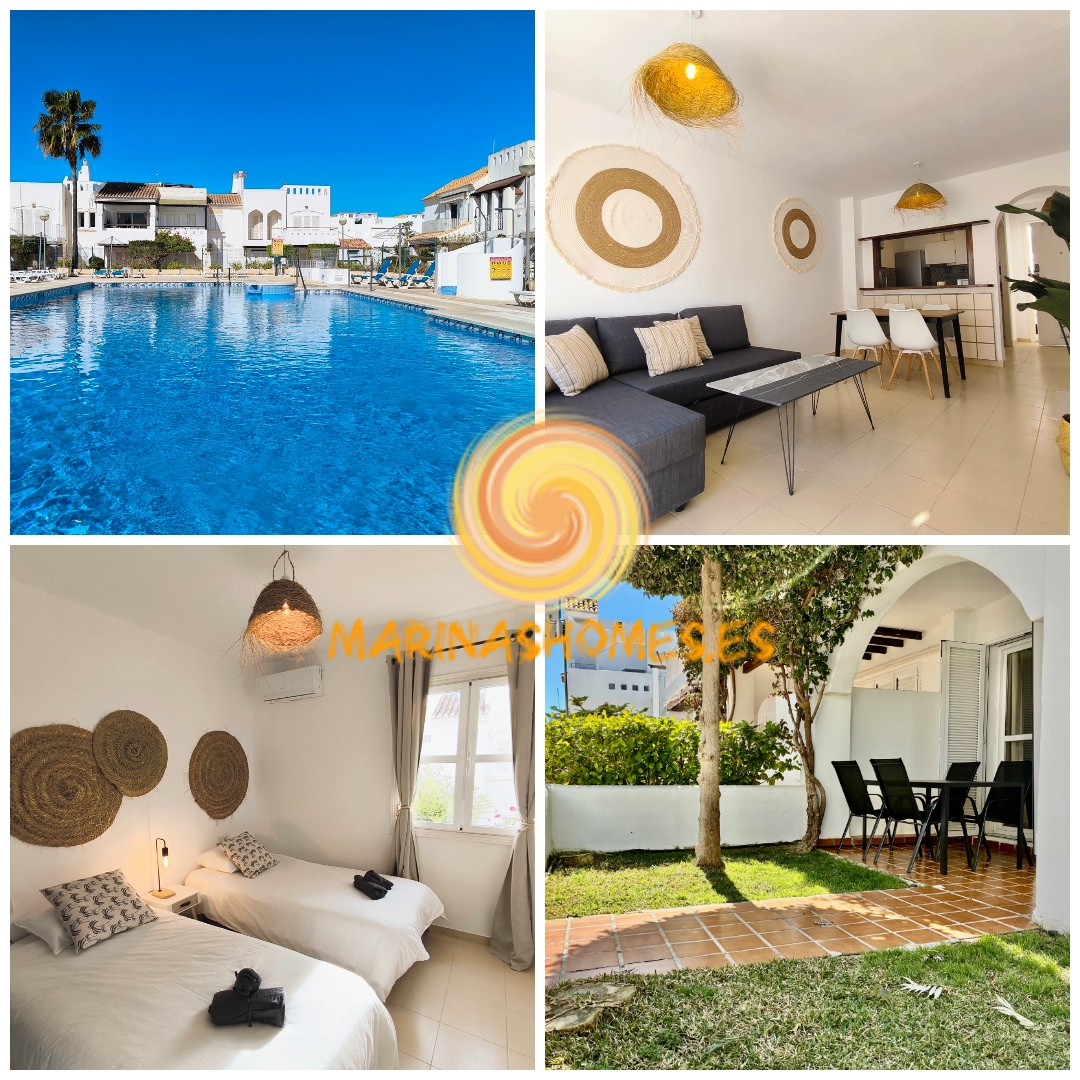 *Pool available all year round by your own responsability. Discover Marinas Sol, just a step away from Cabo de Gata. Relax in its garden, dine on the porch, or take a dip in its pool surrounded by gardens and palm trees. Imagine a perfect day at the beach and then return to your one-bedroom home equipped with everything you need to rest and enjoy, including AC and fiber optics. Enjoy a cozy atmosphere with wicker decor and white tones. Book now and experience an unforgettable vacation!