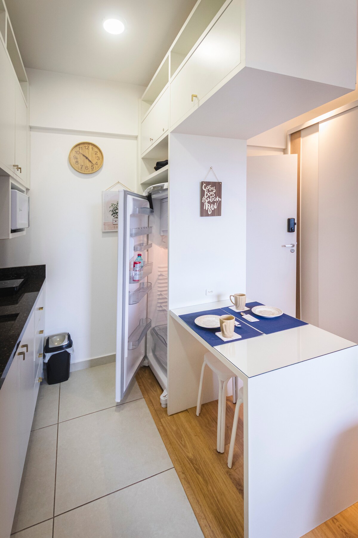 Kuritibanın mərkəzində memarlar tərəfindən imzalanmış dizayn studiyası. Müasir və çağdaş dekor, birinci sinif cihazlar və qüsursuz tərtibatla tam təchiz olunmuşdur. Çarpayı və tək çarpayı ilə 3 nəfərə qədər yerləşə bilər. Tam mətbəx, yüksək sürətli Wi-Fi, Smart TV və kondisioner. İş və ya istirahət üçün mükəmməldir. Mərkəzdə, hər yerə yaxın olan imtiyazlı mövqe. Unikal və zərif məkanda üstün ev sahibliyi təcrübəsindən zövq alın! Duş mükəmməldir😍