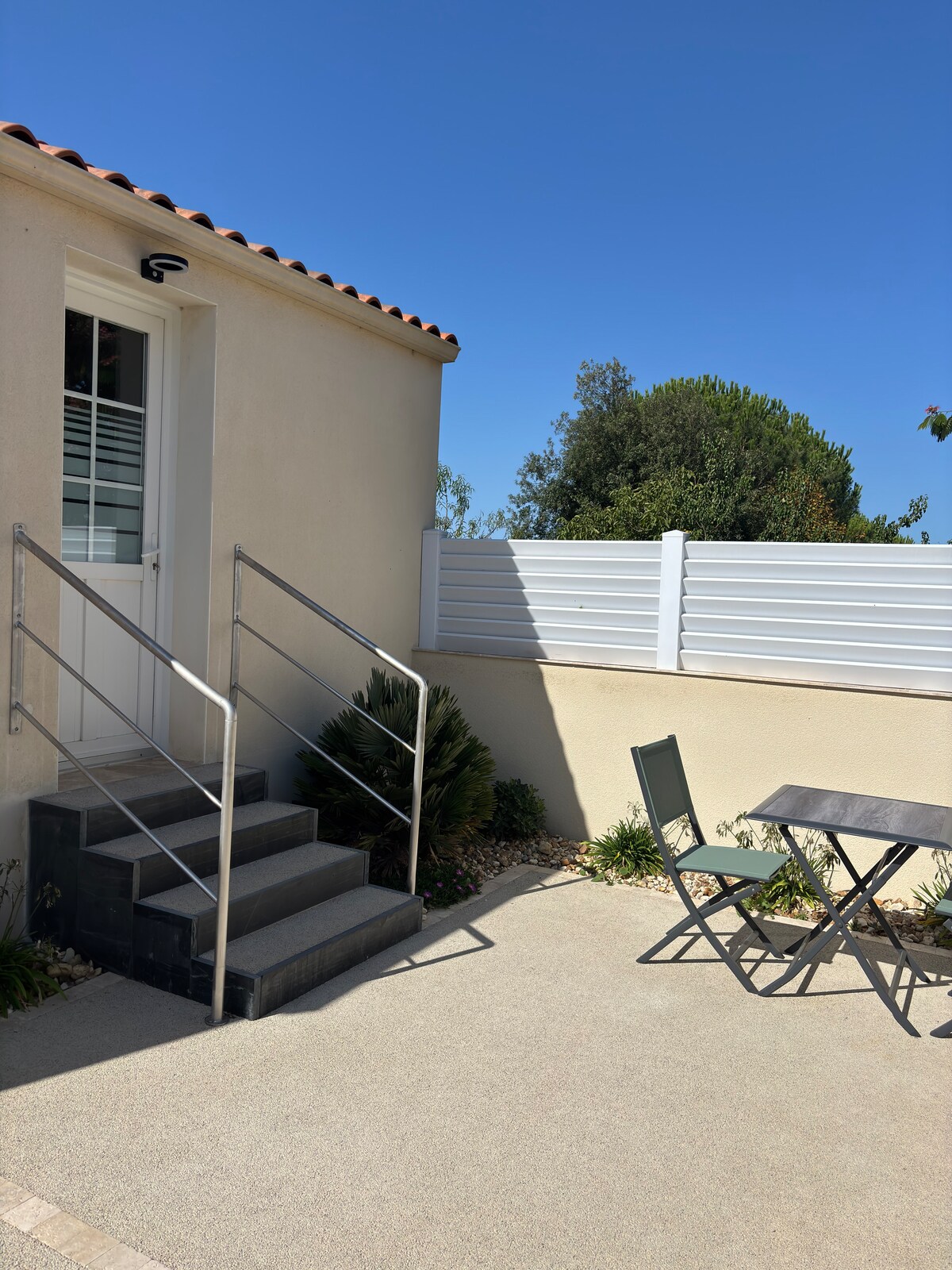32 m2 sahəsi olan, ideal yerdə, sakit bir ev. Evin arxa hissəsində velosiped yolu. Turist və təbii yerlərdən 10 dəqiqədən az məsafədə (Sables d 'Olonne körfəzi, Olonne-sur-Mer meşəsi və duz bataqlıqları). Əmlakın qarşısında parkinq. Çörək zavodlarına, supermarketlərə yaxınlıq. Qonaq otağına açıq mətbəxdən, tualeti olan hamam otağından , yataq otağından və bağ mebeli olan 20m2 TERRASDAN ibarət rahat ev.