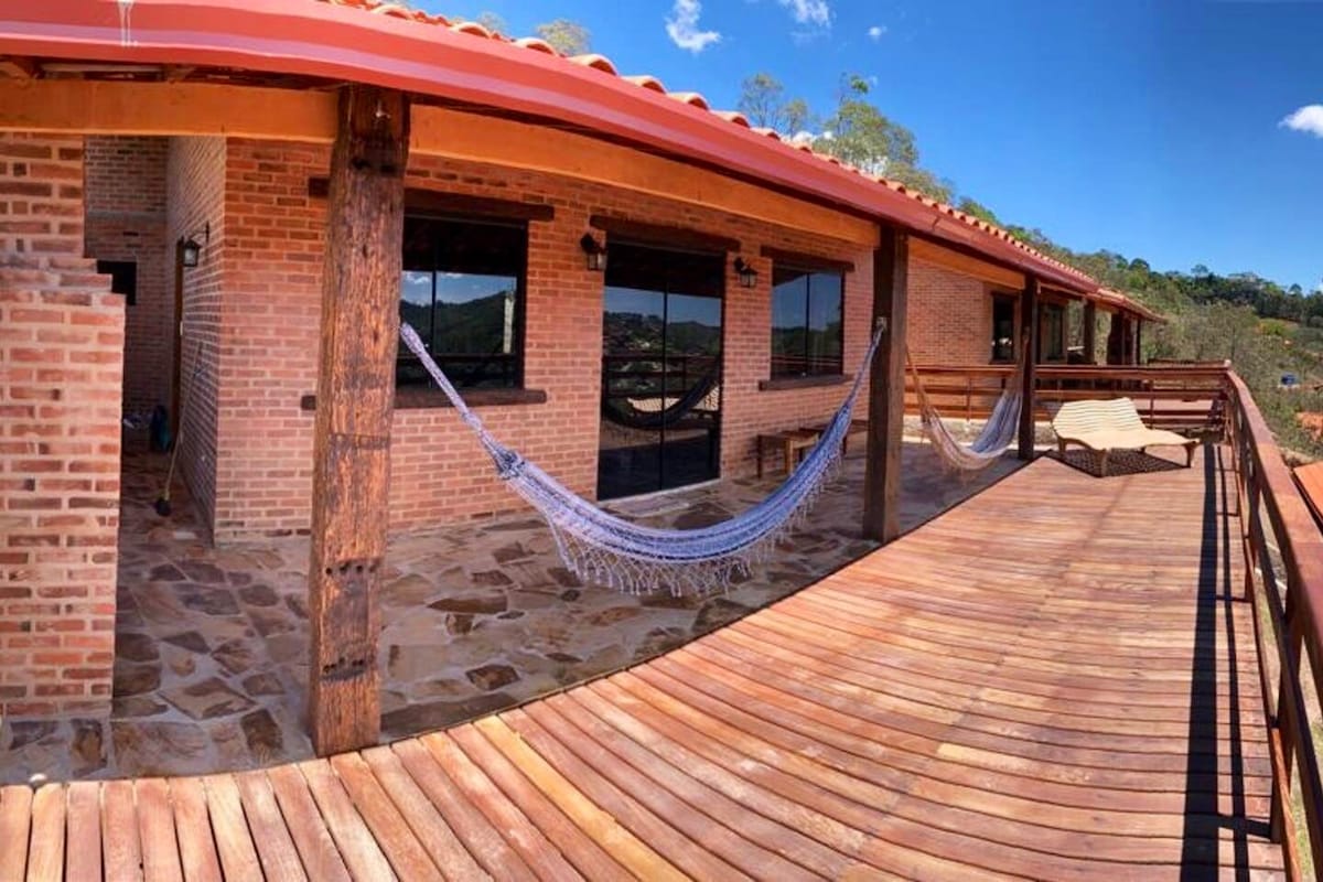 Təbiətlə əhatə olunmuş, hər bir detalı rahatlıq və eksklüzivlik təklif etmək üçün dizayn edilmiş müasir dağ evi. Dağ evi İbitipoka-MG kəndində, mərkəzdən 500 metr məsafədə yerləşir. Təbiətlə ümumi təmas. Üzgüçülük hovuzu, vanna, buxarı (açıq və qapalı) və qurman sahəsi ilə. Səhər yeməyi daxildir. Ona daxil olmaq üçün pilləkənlərimiz var. Səhər yeməyi planlaşdırılmış vaxtla dağ evinin özündə bir səbət çatdırılır. Əhatə olunan qaraj yerimiz var.