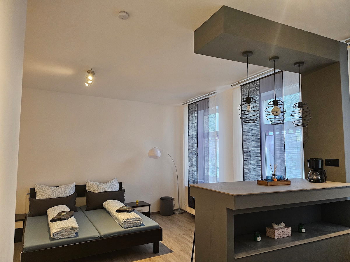 Fasilə verin və bu rahat vahədə dincəlin. Çemnits şəhərinin kənarındakı sakitlikdən zövq alın və şəhəri və gözəl mühiti buradan kəşf edin. Mənzil iki nəfər üçün gözəl genişdir, lakin açılan divan çarpayı sayəsində üç-dörd nəfər də rahat yata bilər.