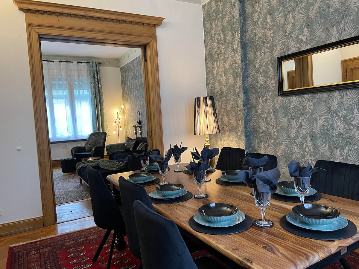 Başqa bir dünyaya xoş gəlmisiniz!!!!! 1902-ci ildə tikilmiş və abidə kimi göstərilən tarixi avadanlıqdakı bu dupleks Limburqda ikinci dərəcəli nadirlikdir. Məkan sizə təklif edir: - Smart TV və hündürlüyü tənzimlənən masalar olan 5 yataq otağı - 9 yataq yeri - 2 hamam otağı - Müasir mətbəx - 2 televizorlu geniş qonaq otağı və yemək sahəsi - 200 m² yaşayış sahəsi - 2 eyvan - mənzildən kənarda əlavə tualet - bir pulsuz parkinq yeri, hər biri 7,50 avro olan əlavə yerlər - Pulsuz Wi-Fi