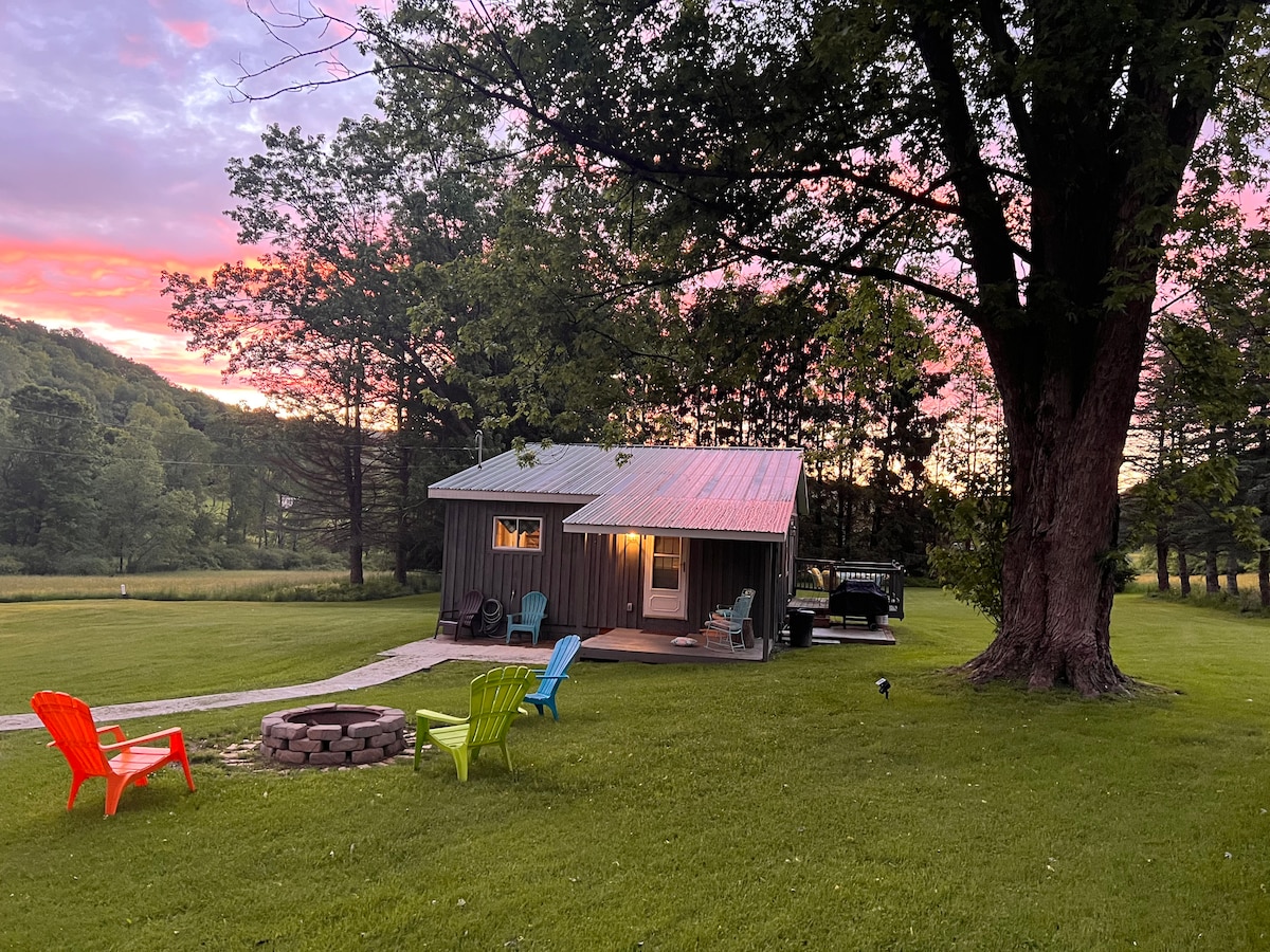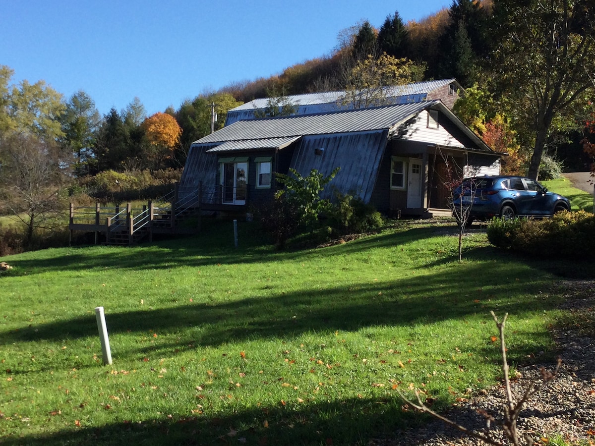 Ellicottville 'nin il boyu maraqlı kurort kəndindən bir az kənarda, 30 akrlıq ölkə mülkündə tikilmiş ailə kabinəsi. Təbiətsevərlər və açıq hava həvəskarları üçün mükəmməl olan kabinədə evciyə bənzər bütün zəruri ehtiyaclar var. Bağçaların yaxınlığında yerləşir və sakit təpələrlə əhatə olunub. Qapı pilləkənindən zövq alın və ya əmlak sahibi ilə bələdçi gəzintisi bron edin və gölümüzün yarımadasında dərman bitkiləri və çiçəklər, torpağın topoqrafiyası və fermada təzə piknik naharı haqqında məlumat əldə edin.