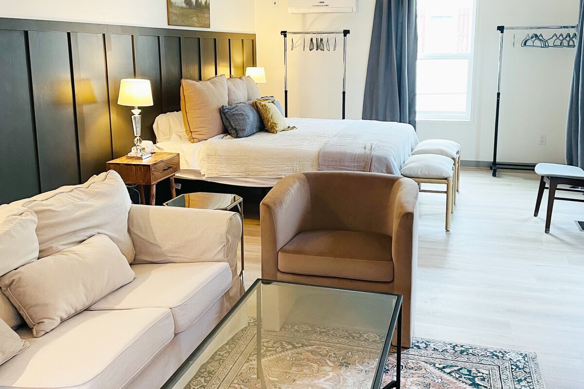Plyus döşəkağıları, Temperpedik yastıq və qaralma pərdələri olan rahat tam çarpayının olduğu ayrıca studiyadan zövq alın. 24/7 klaviatura girişi olan şəxsi hamam otağınız və ayrıca girişiniz var. Sürətli Wi-Fi, mikrodalğalı soba, soyuducu və pulsuz qəlyanaltılar olan iş sahəsindən zövq alın. Birbaşa ETSU-dan küçədə. Timberdən sadəcə 1 dəqiqəlik məsafədə/5 dəqiqəlik məsafədə olmağı sevəcəksiniz! Üstüörtülü yemək və Tennessi Hills Brewstillery. Tarixi Ağac Küçələrinin ağacdan salınmış küçələri ilə Conson şəhərinin mərkəzinə gözəl bir gəzinti.