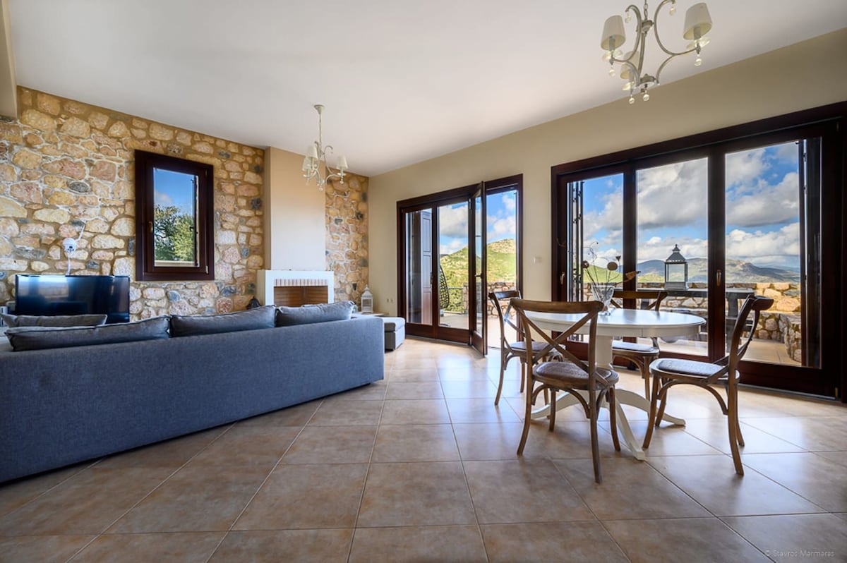 Yunan xalq ənənəsi həmişə bizim həvəsimiz olub. Ailə varislərimizin həqiqi toxunuşu məkanı gözəl hamletimizlə ənənəvi edir. Mənzərə ziyarətiniz üçün istinaddır. Baxışlar mavi Myrtoo dənizinə və Qarşıdakı Qəsr Şəhərinə gedir. Böyük terrasın oturma yerində bundan zövq alın. Evimizin məkanı tam, rahat və çox sakitdir. Lakin əsasən o, sevgi və ev sahibliyinə aludə olmaqda çətinlik çəkir.
