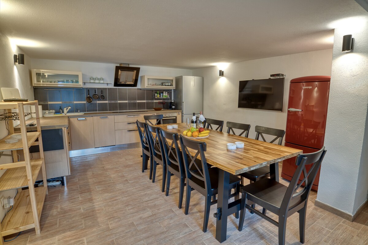 Studiya/mənzil evin birinci mərtəbəsində yerləşir və öz mətbəxi, hamam otağı və ayrıca balkonu var. Balkondan Boka Körfəzi və Veriqe Boğazının gözəl mənzərələrindən zövq ala bilərsiniz. Qonaqlar üç səviyyədə təşkil edilən evin qarşısındakı terraslara da daxil ola bilər. Bu terraslar rahatlamaq və təmiz dəniz havasından zövq almaq üçün mükəmməl yemək və qəhvə masaları, eləcə də açıq havada duş təklif edir.