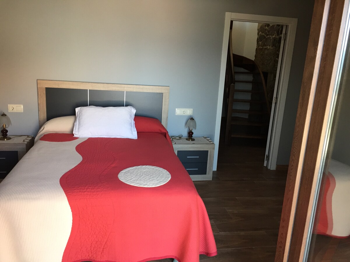 Kottec Santyaqo de Komposteladan cəmi 10 dəqiqəlik məsafədə gözəl bir yerdə yerləşir. Burada kənd turizminin yeni konsepsiyasında Ulla çayının yanında təbiətin əhatəsində sakit və romantik günlər keçirə bilərsiniz. Hamam otağı, yataq otağı, mətbəx, qonaq otağı, divan çarpayısı, televizor, Wi-Fi, kondisioner və açıq terrasda paylanmış 27 nəfərlik otaqda * * 2 nəfərlik tutumu olan, çunq, kül ağacları….