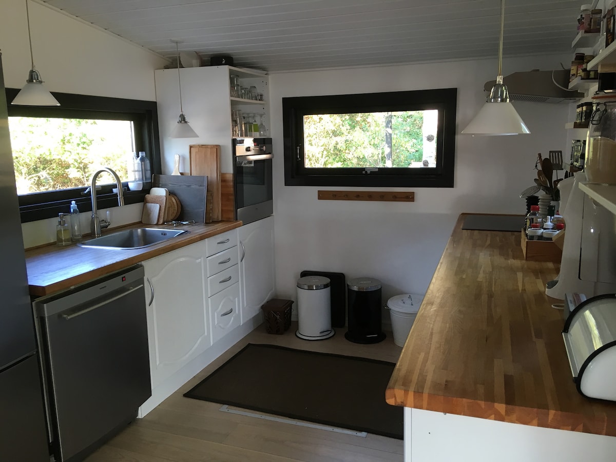 Welcome to our newly renovated cottage located near Roskilde Fjord. You'll be surrounded by peaceful nature with view to our little lake and only 3 min walk to the fjord, which offers stunning sunsets. There is also possibility of charging your electric car if needed and the supermarket is only 5 min away by car. We hope you enjoy it as much as we do! Note. We accept only couples and families. We do not accept groups below 35. No parties are allowed.