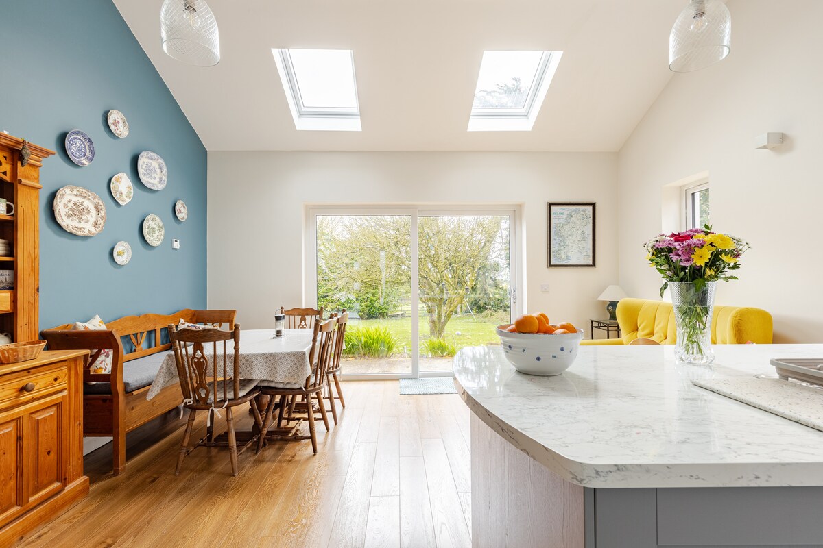 Modern 1-bed apartment in a converted garage. Set in peaceful, scenic countryside. The upstairs bedroom has two single beds, dressing table and clothes rail. Downstairs is a stylish living room with a smart, flat-screen TV. The corner sofa has adjustable headrests and pulls out to a double bed with convenient linen storage underneath. There is a fully equipped kitchenette and a bathroom with a Thermostatic Mixer Shower.