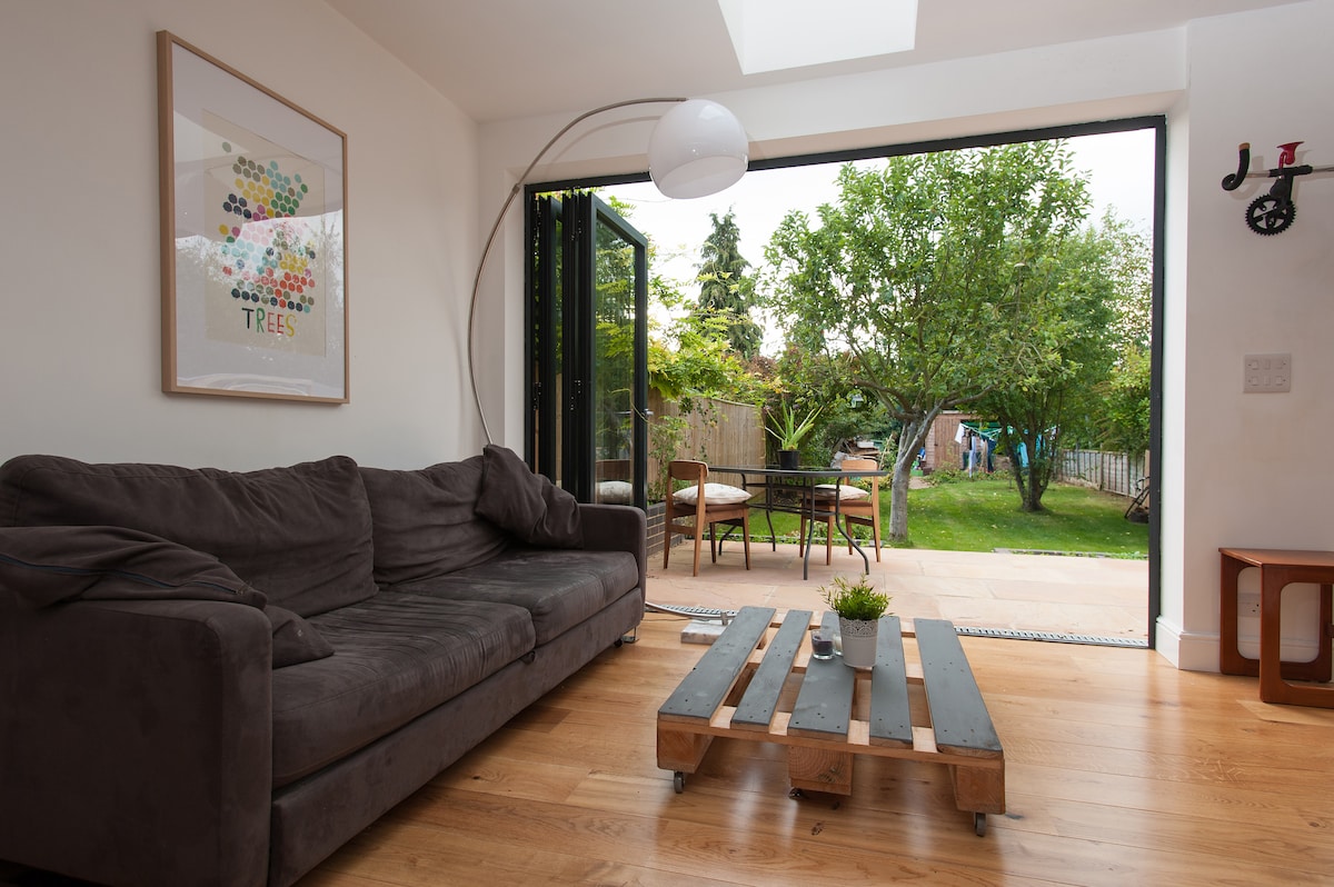 Sole use of entire house including one double bedroom, large light airy kitchen/dining/socialising space with log burner, tv room, full bathroom, downstairs toilet and large garden. Free on street parking. Close to river, village pubs, shops and buses to town c15 mins. This our home, guests stay in the guest bedroom as shown and have sole use of the property. One dog allowed. Please don’t leave your dog alone in the property. Dogs aren’t allowed upstairs or on the furniture