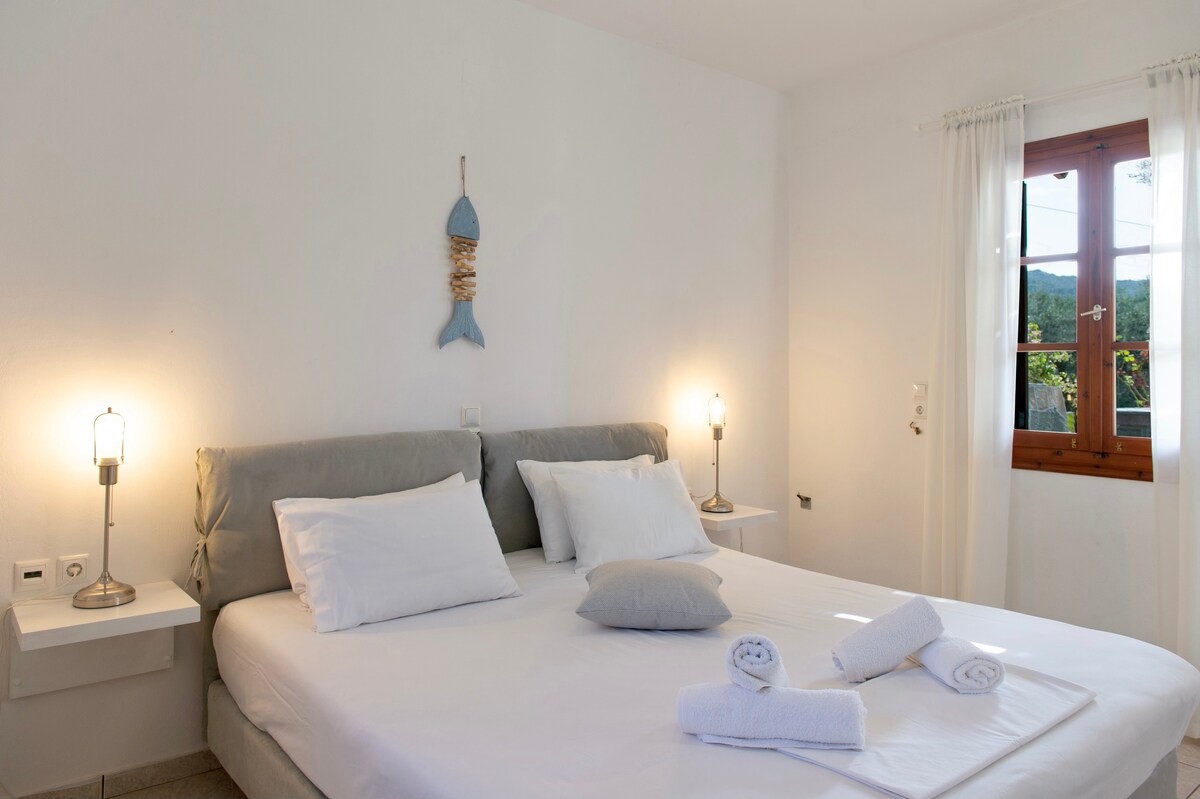 Bu, adanın şimal-şərq tərəfində çox sakit və sakit bir yerdə kottec evidir. Egey dənizinə möhtəşəm mənzərəniz var. Bu, tətilinizdə istirahət etmək və istirahət etmək imkanı verir. Mətbəxlə paylaşılan istirahət məkanında Grecostrom Bodytopia Series döşəyi olan 150-179 sm-lik çarpayısı olan bir əsas yataq otağı və iki birnəfərlik çarpayı var. Bu, həmçinin tam təchiz olunmuş mətbəx və hamam otağıdır. Bu, tətilinizdən öz tempinizlə zövq almaq imkanı verəcək.