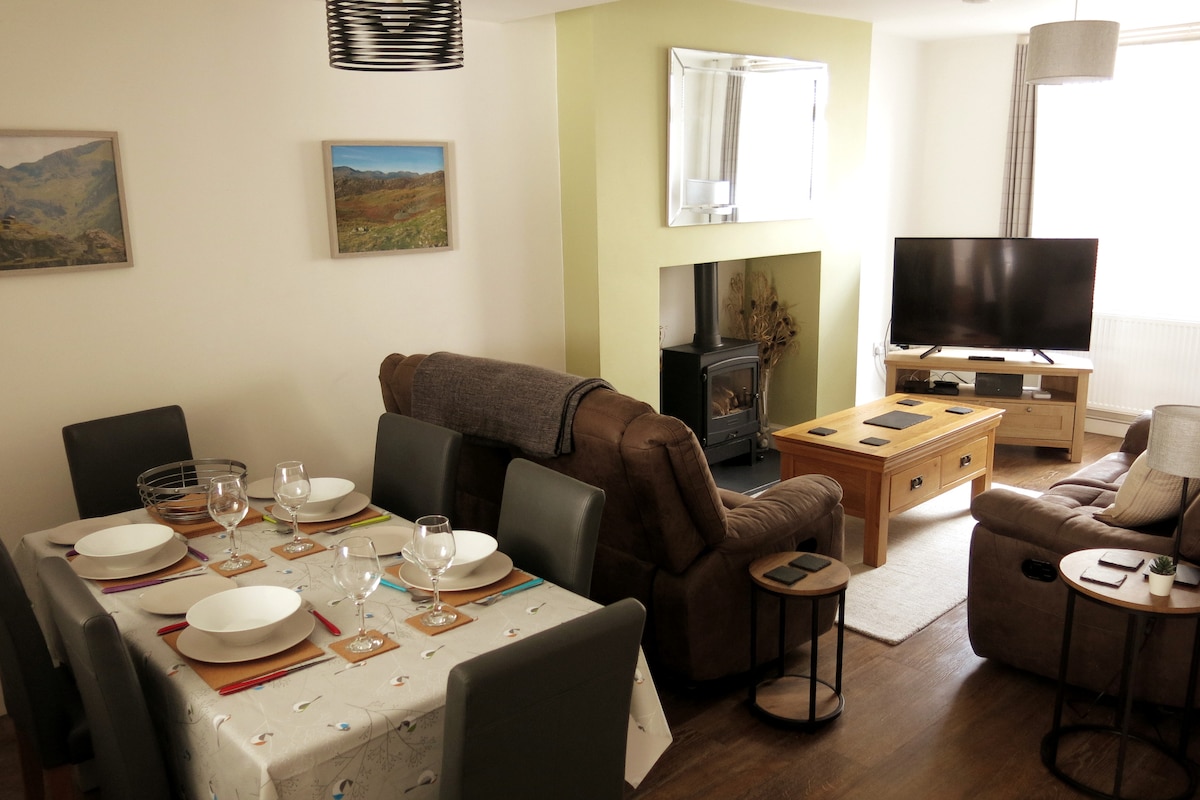 In the heart of Llanberis, with Padarn Lake on your doorstep (watersports and swimming facilities), a short walk to both the Snowdon mountain railway & the 'Llanberis path' up Yr Wyddfa/Snowdon. A fully modernised 19th century house with views of Yr Wyddfa at the rear and a quiet cul-de-sac street at the front. Benefits from being right by the Llanberis High Street, with it's cafes, outdoor shops, takeaways and everyday essentials at your disposal. Also good bus links if you're without a car