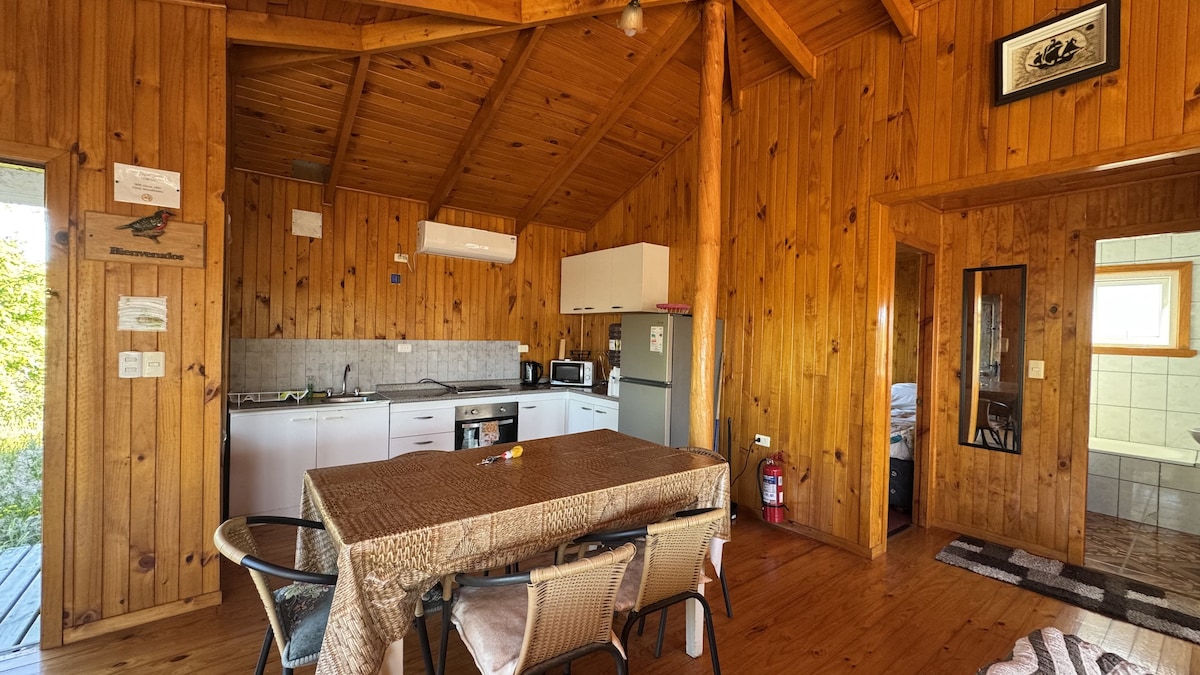 Bunun üçün 2 azyaşlı uşaqla bir neçə və ya 1 evlilik tutumu olan mühitdə kabinə. Divan çarpayımız var. Puerto-Varas şəhərindən bir neçə dəqiqəlik məsafədə yerləşir. 5 nömrəli marşruta əla bağlantı və Llanquihue gölündən və Vulkana gedən yoldan cəmi bir neçə dəqiqə. İstirahət və istirahət üçün ideal yerdir, burada da işləməlisiniz, ehtiyacınız olan hər şey bizdə var. Mətbəxdə piştaxta (4p), minibar, elektrik sobası və qablar var.